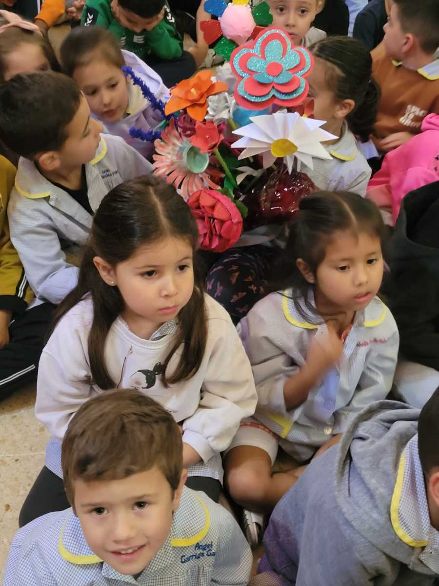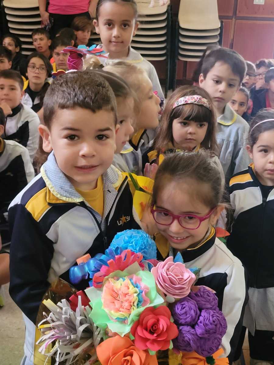 Nuestro alumnado de Infantil y Primaria se reunió esta mañana en el Salón de Actos para celebrar nuestra tradicional ofrenda a la Virgen María. La celebración de hoy fue organizada por los más pequeños del cole y su profesorado.