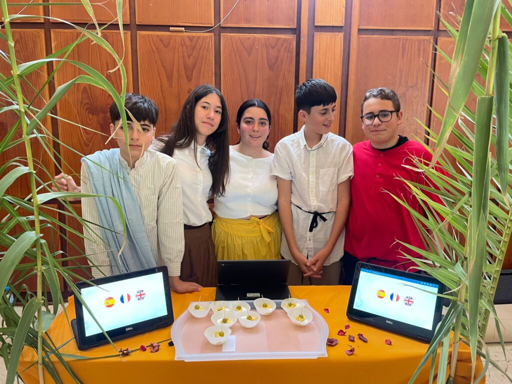 Esta tarde la tarde los alumnos de 2º ESO celebraron junto a sus familias el cierre de la Narrativa “Saborea: Saber y Sabor”. A través de la cocina, se han trabajado las grandes culturas de España. Los olores y sabores de las comidas judía, musulmana y cristiana inundaron nuestro Salón de Actos convertido en un mercado en el que nuestro alumnado pudo compartir con sus familias todo lo vivido y aprendido en esta interesante experiencia.