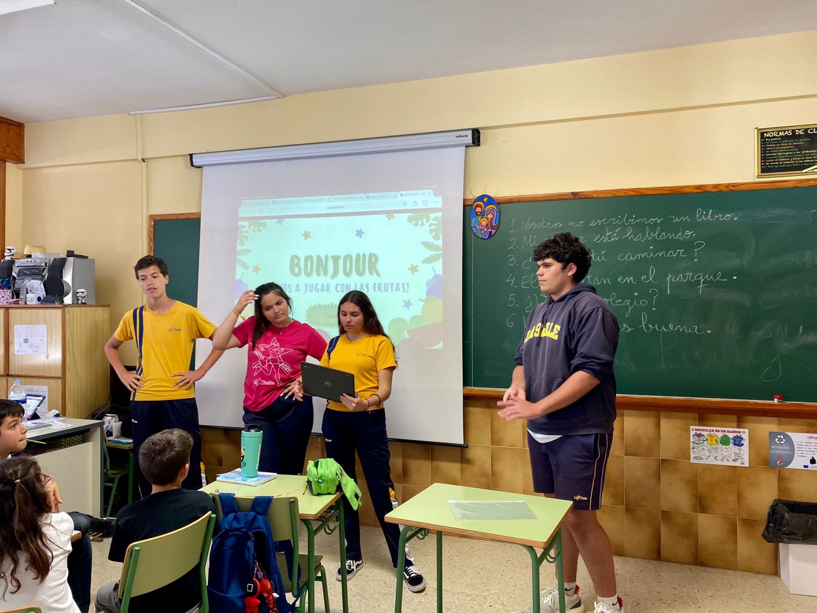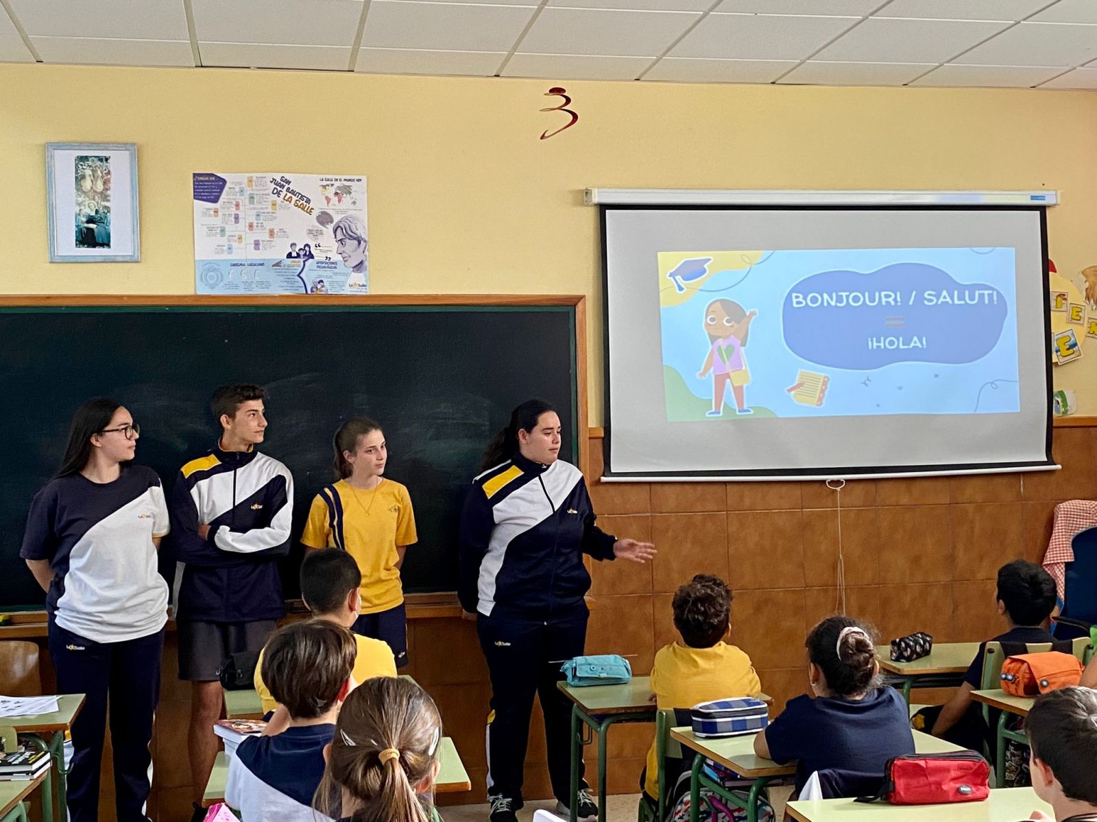 Los alumnos de 4º ESO realizaron una clase de iniciación al francés en los cursos de 3º y 4º de Primaria. Los mayores del cole han podido enseñarles los meses del año, números, frutas y muchas cosas más. Ha sido una tarde diferente y muy divertida.
