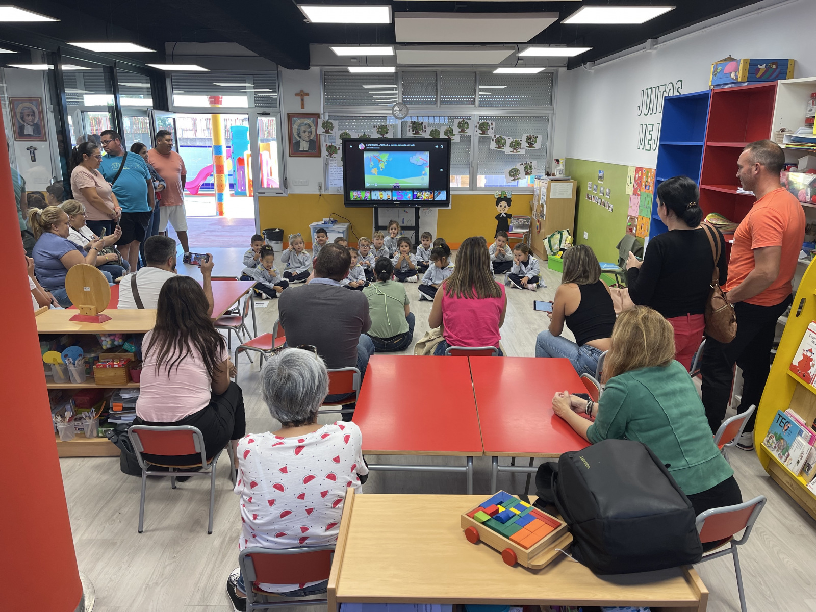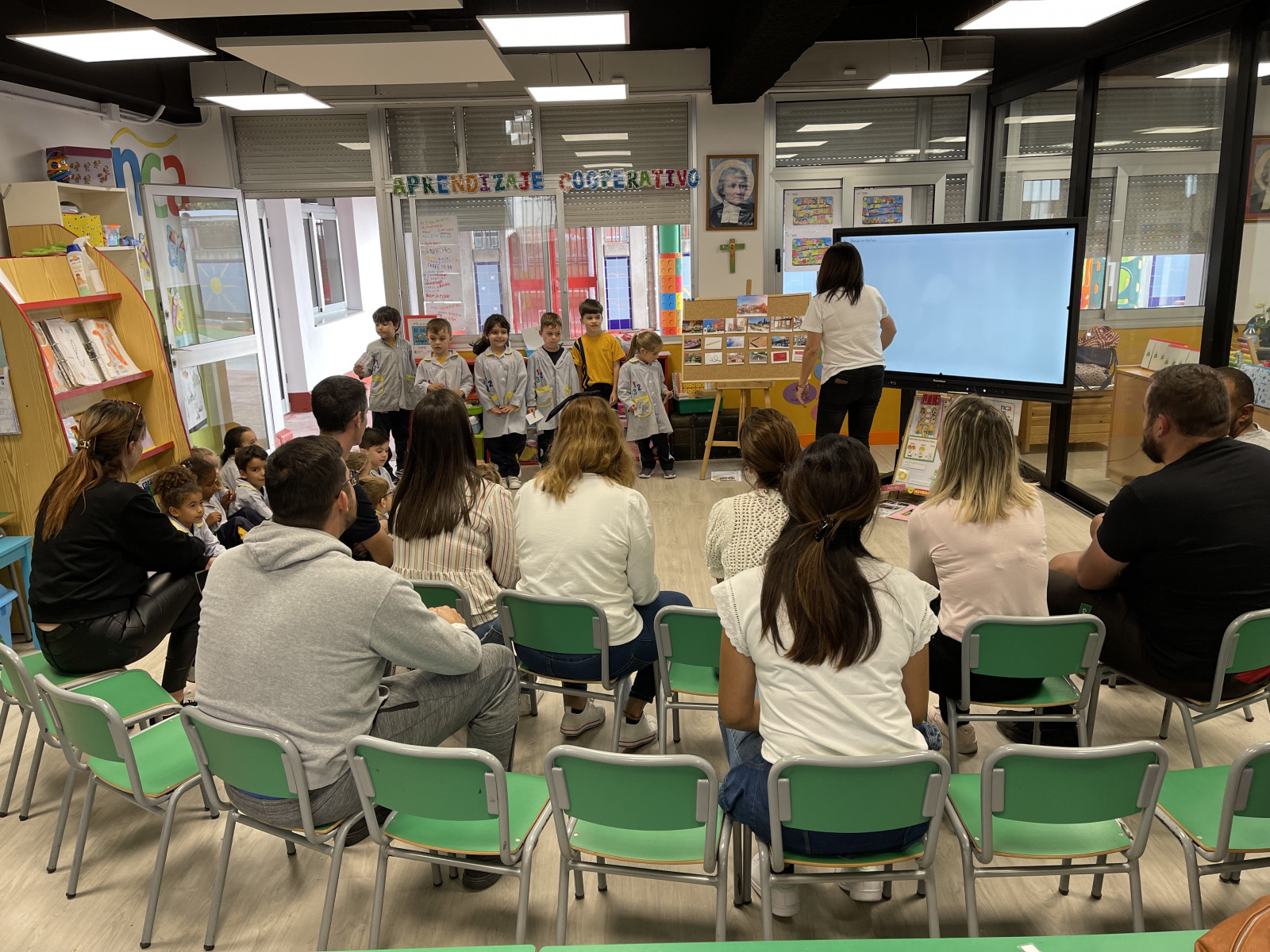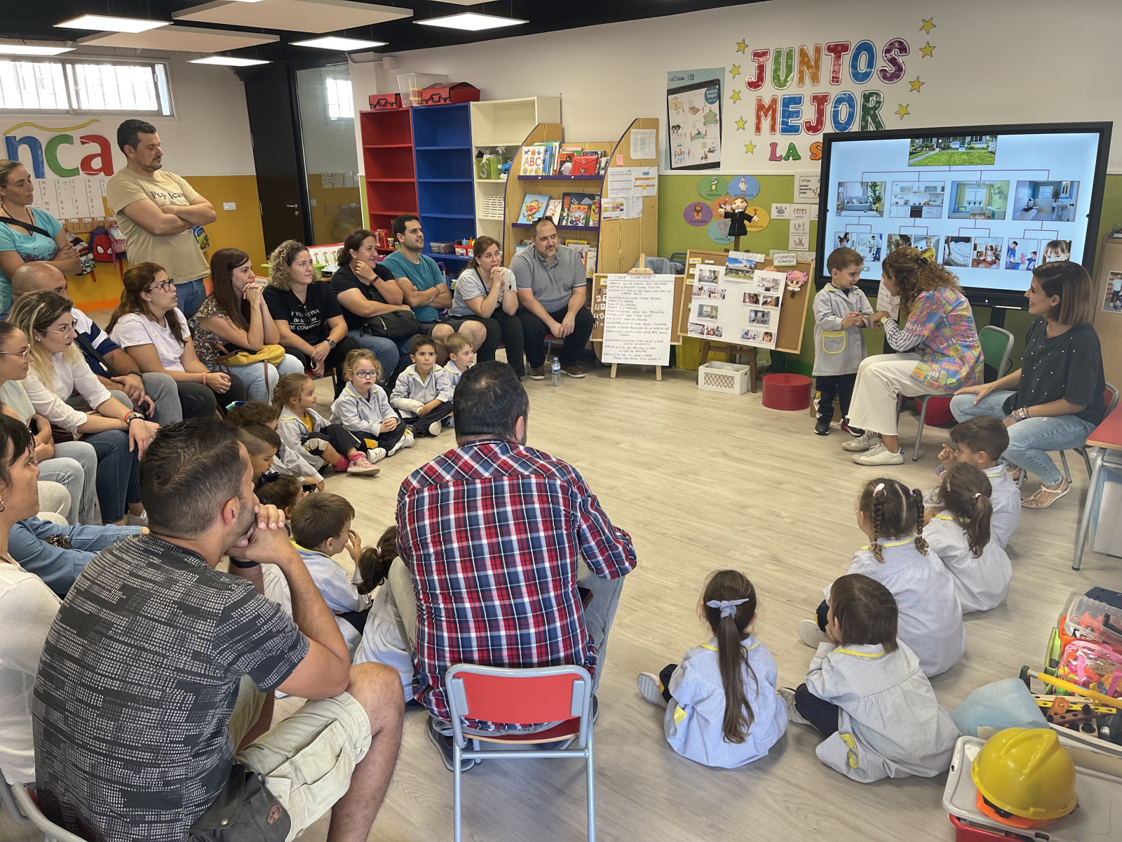Y por fin llegó el gran día en que nuestros padres han vuelto a pasarlo muy bien con nosotros en las clases. Después de haber estado unas cuantas semanas ayudando a Ernesto el arquitecto a investigar sobre nuestro colegio, nuestras clases y nuestro barrio… hemos podido celebrar con nuestras familias todo lo que hemos aprendido.