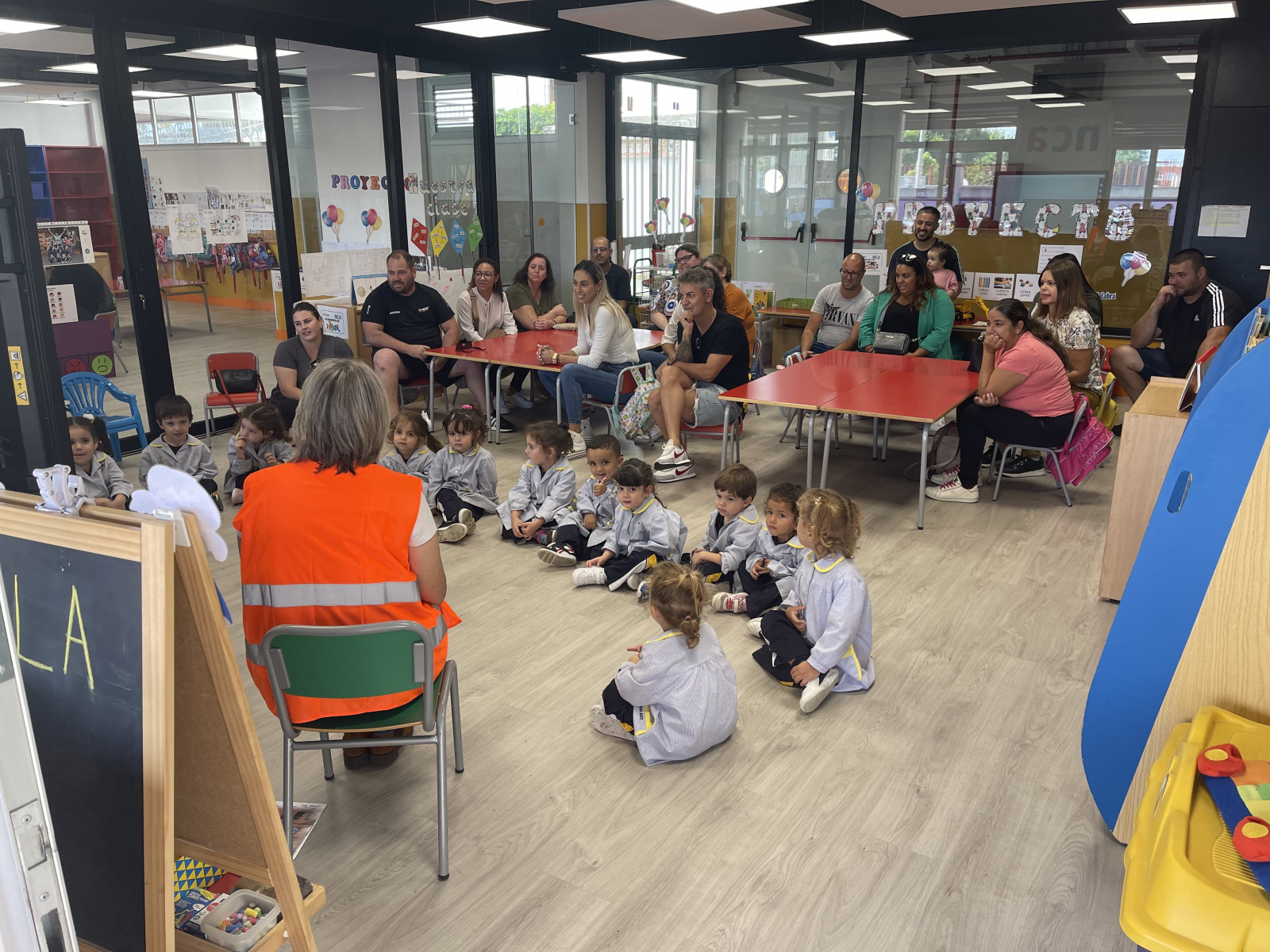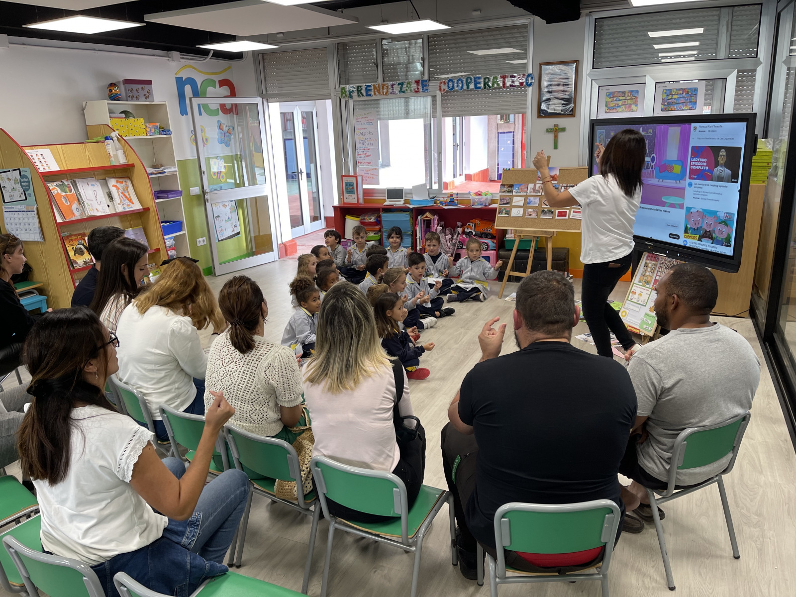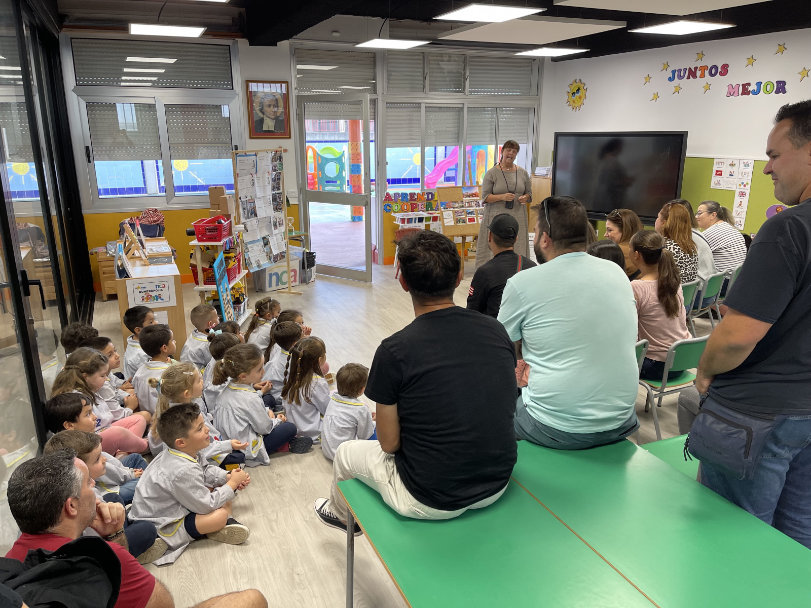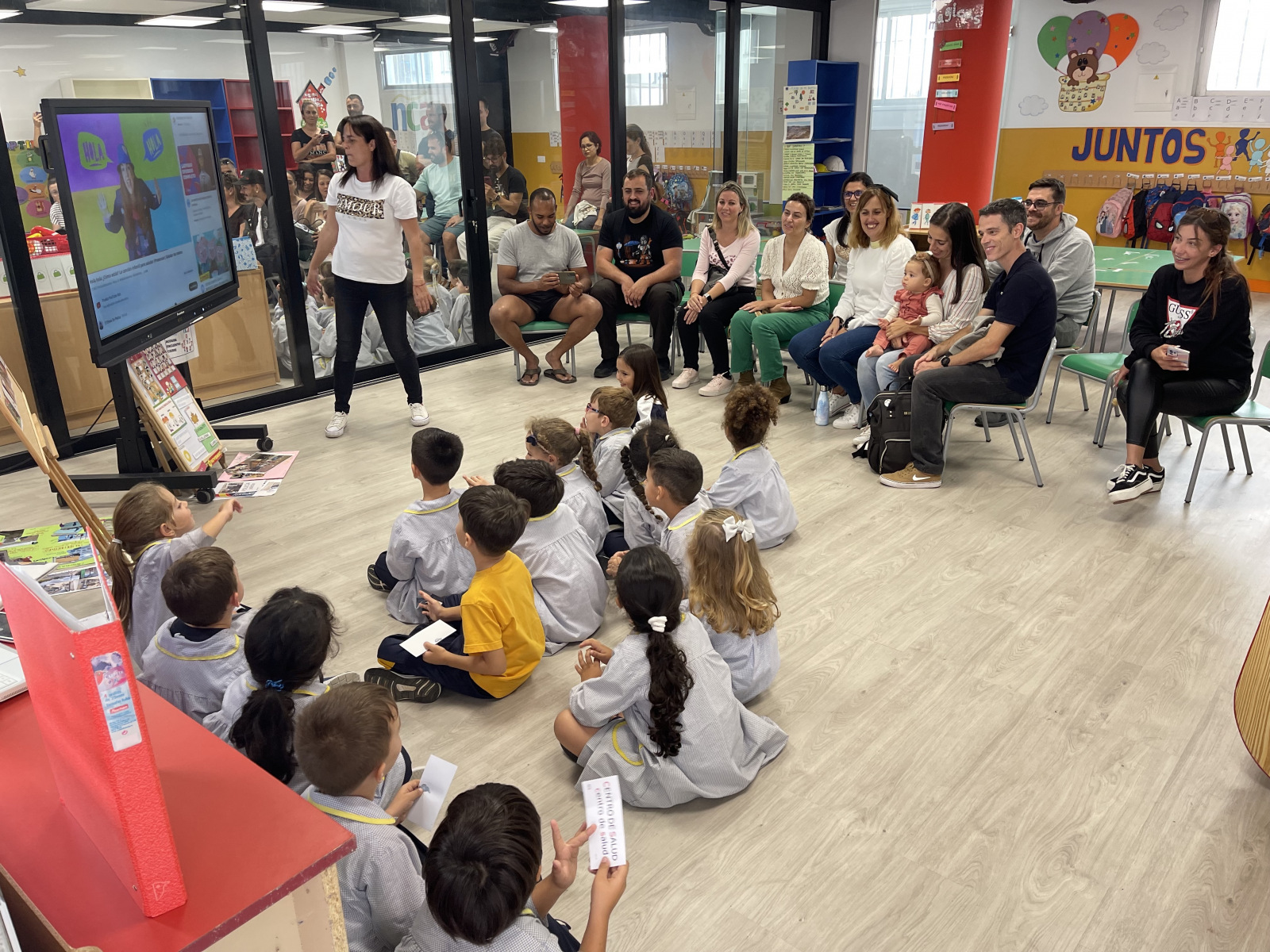 Y por fin llegó el gran día en que nuestros padres han vuelto a pasarlo muy bien con nosotros en las clases. Después de haber estado unas cuantas semanas ayudando a Ernesto el arquitecto a investigar sobre nuestro colegio, nuestras clases y nuestro barrio… hemos podido celebrar con nuestras familias todo lo que hemos aprendido.