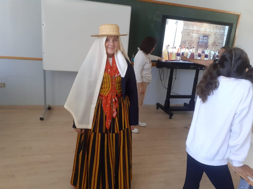 Dos madres de nuestro colegio han ofrecido a lo largo de la jornada de hoy varias charlas a todo el alumnado del centro sobre los trajes típicos de Canarias. Esta es una de las diversas actividades que en estos días estamos realizando con motivo de la celebración del Día de Canarias.
