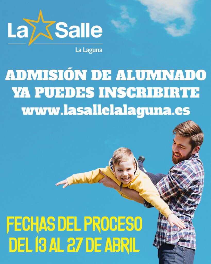 En el día de hoy comienza el periodo de admisión del alumnado para el próximo curso. Puedes consultar toda la información y rellenar tu solicitud accediendo en el siguiente enlace: www.lasallelalaguna.es/admision