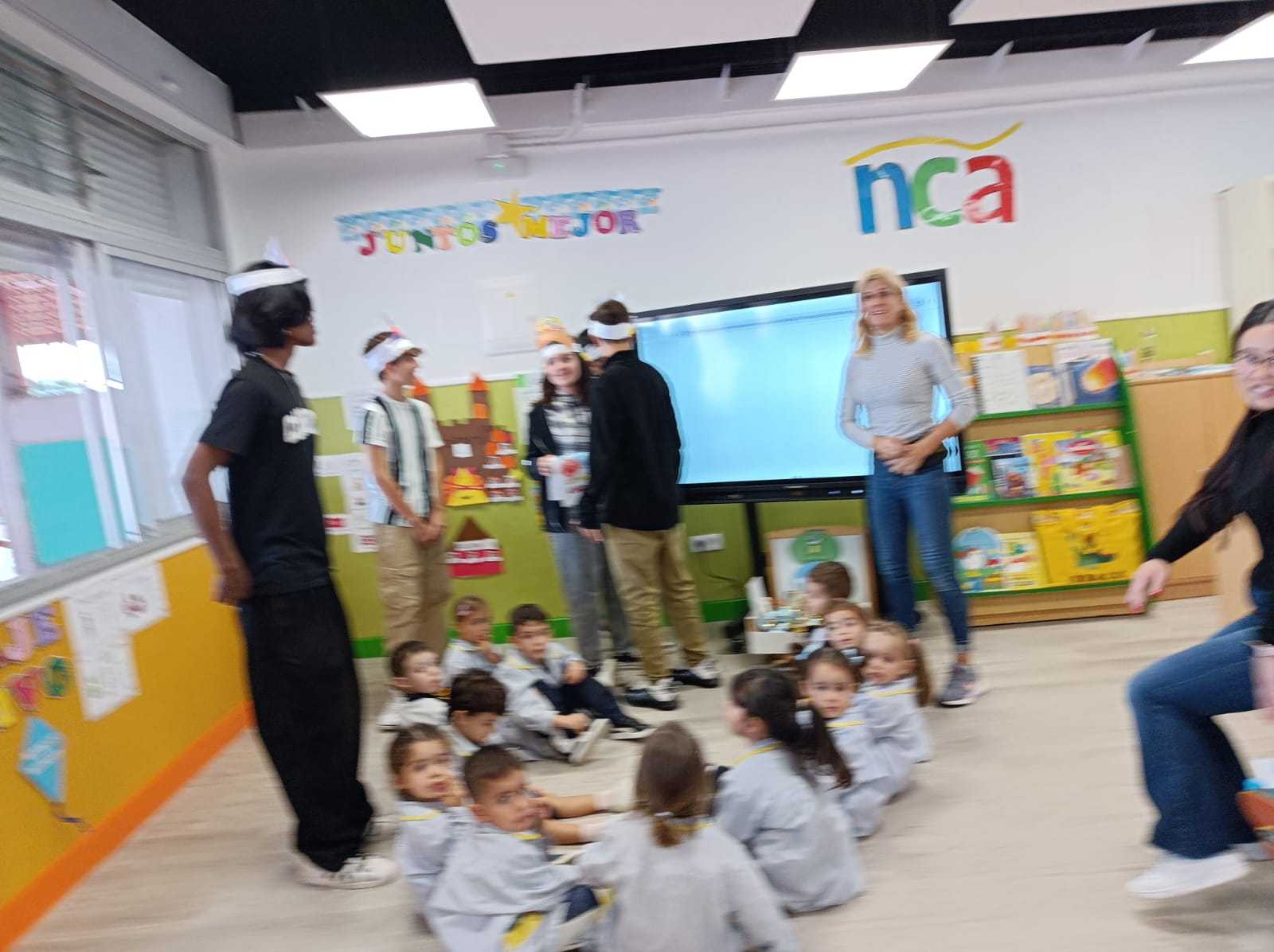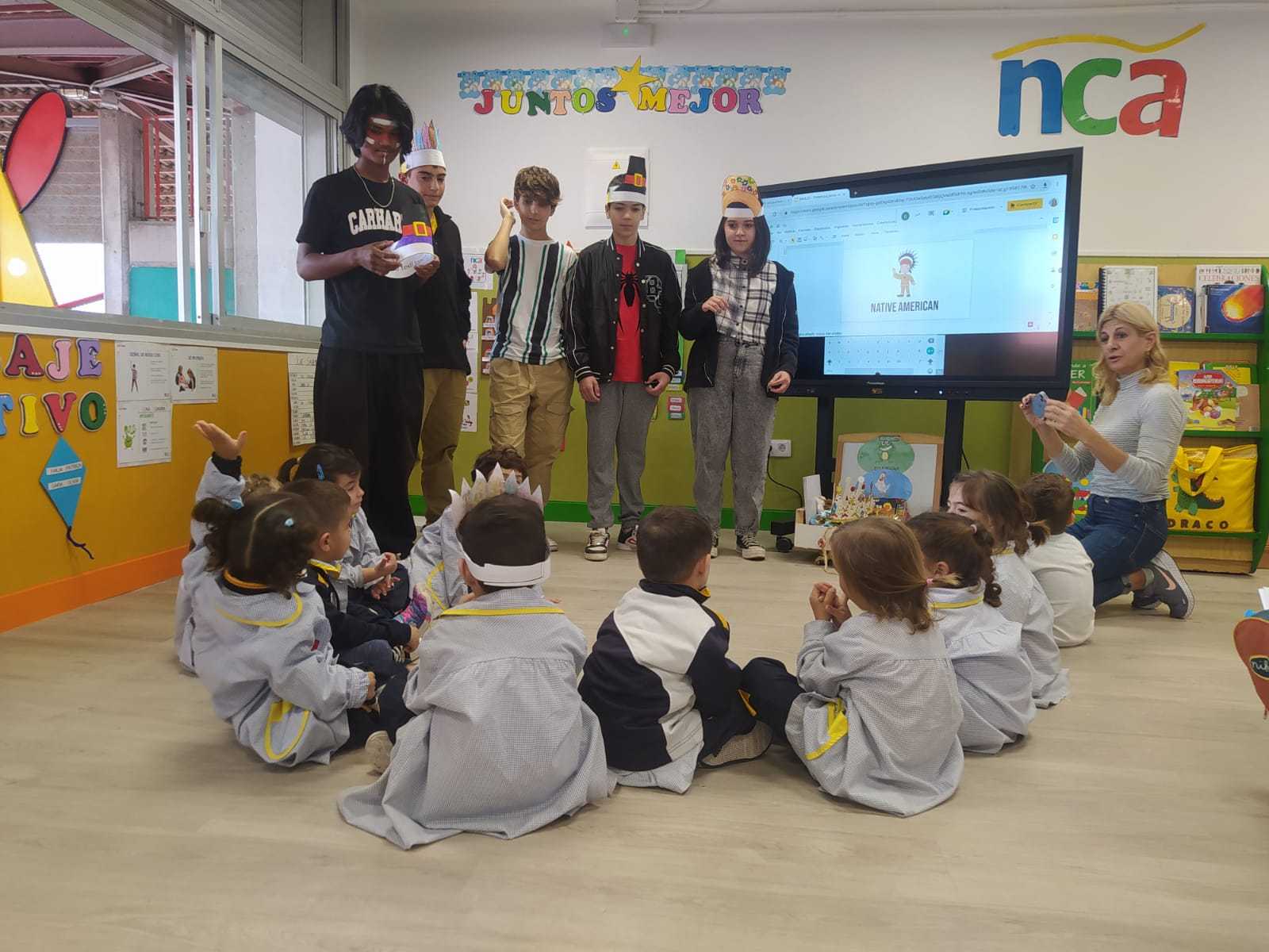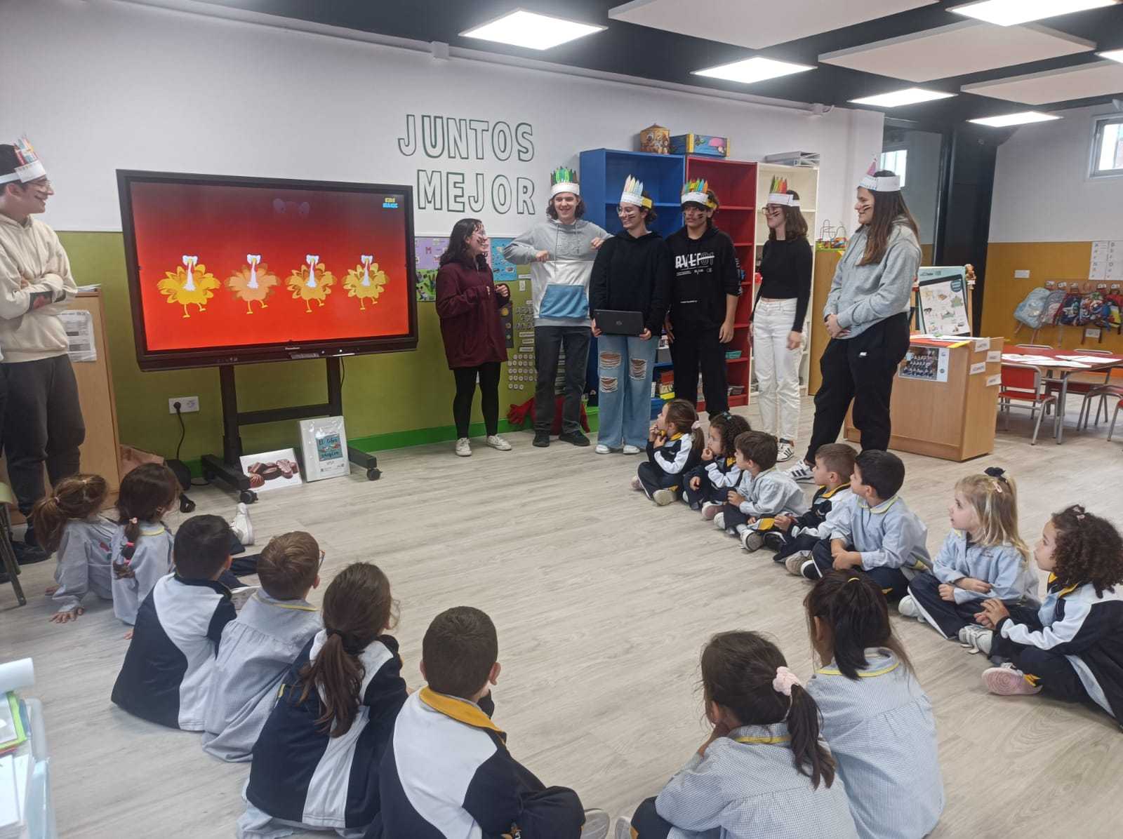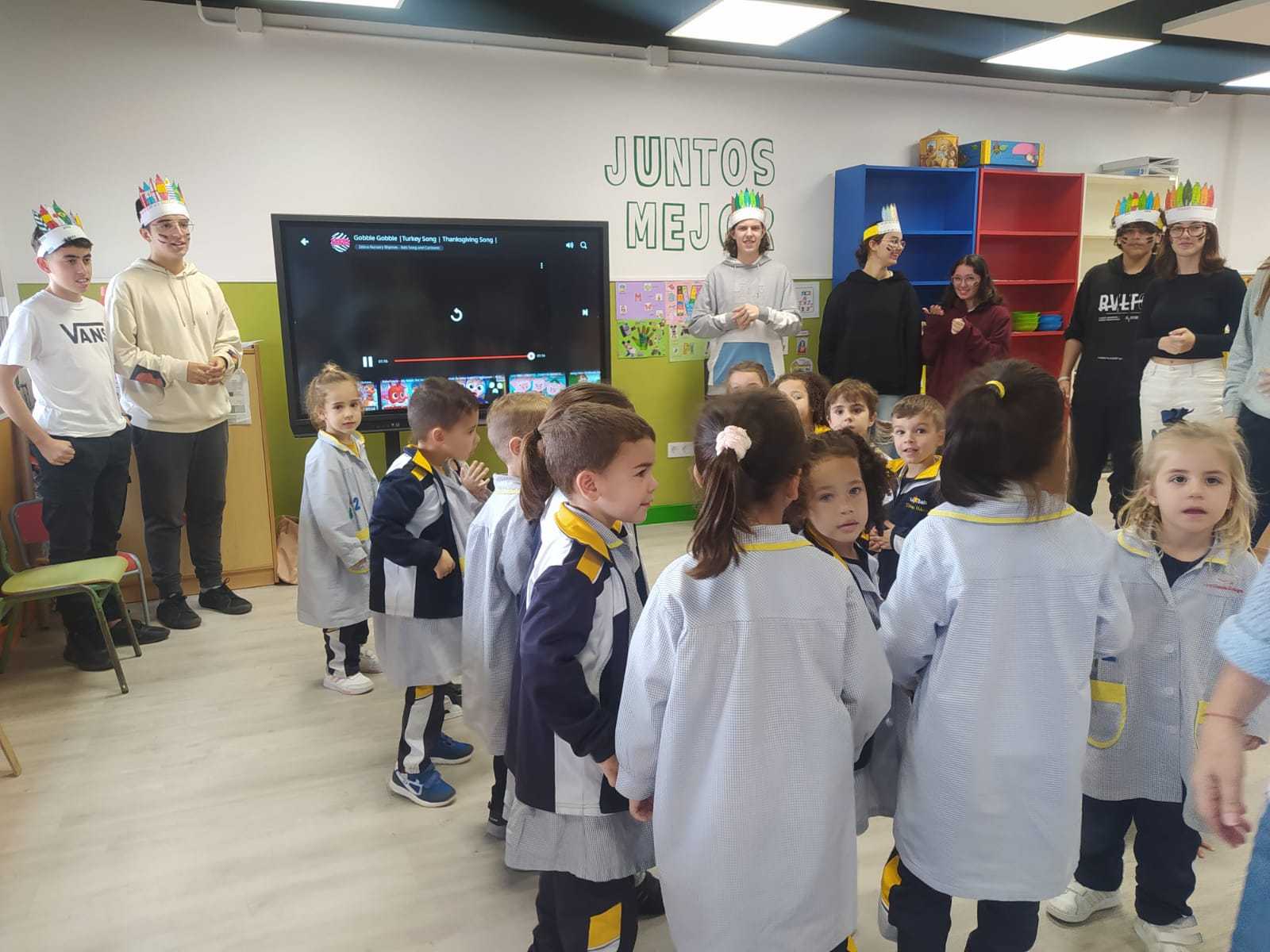 El alumnado de secundaria y de infantil compartieron una divertida tarde de juegos, canciones y tradiciones relacionadas con el día de Acción de Gracias (Thanksgiving).