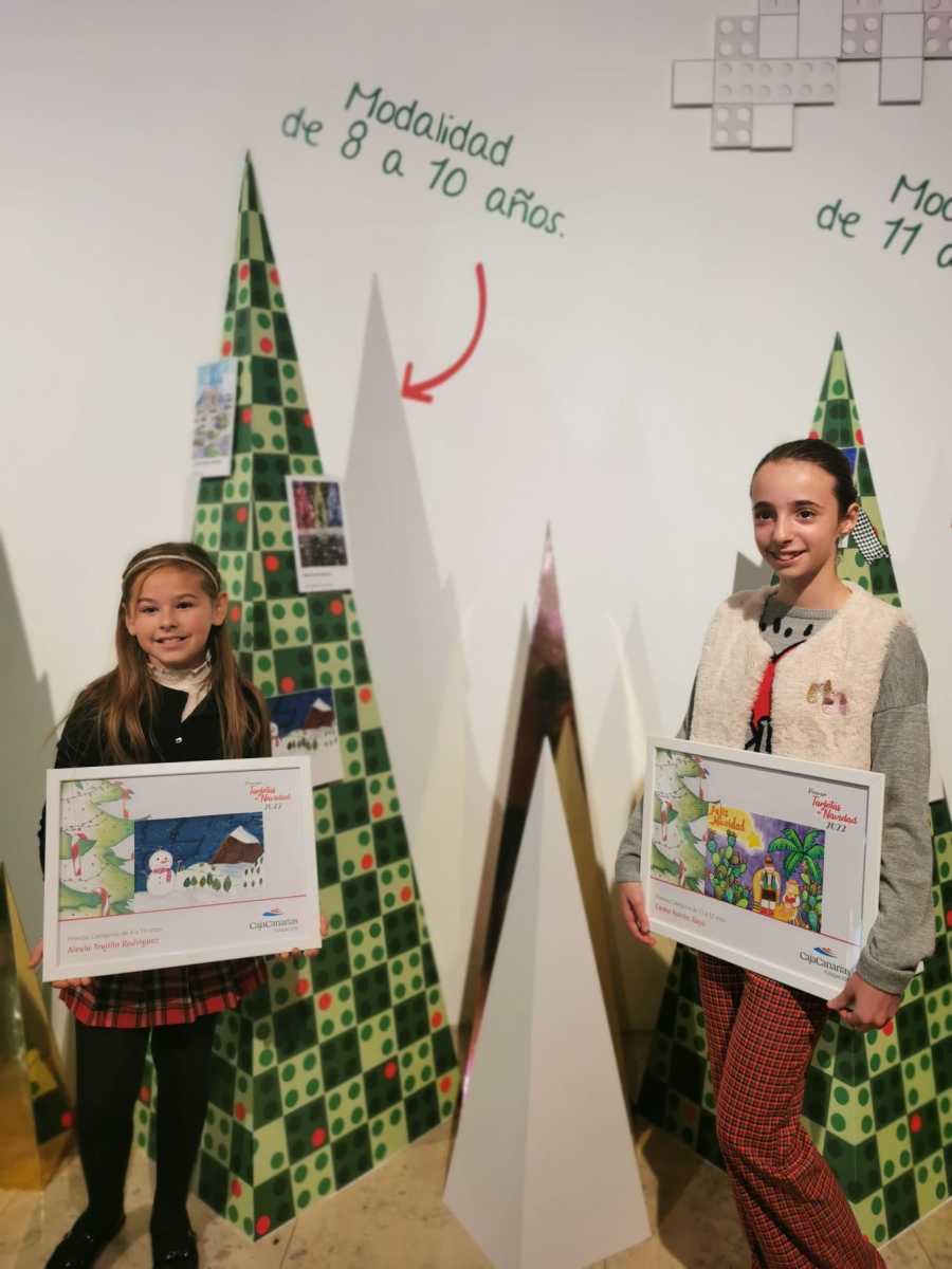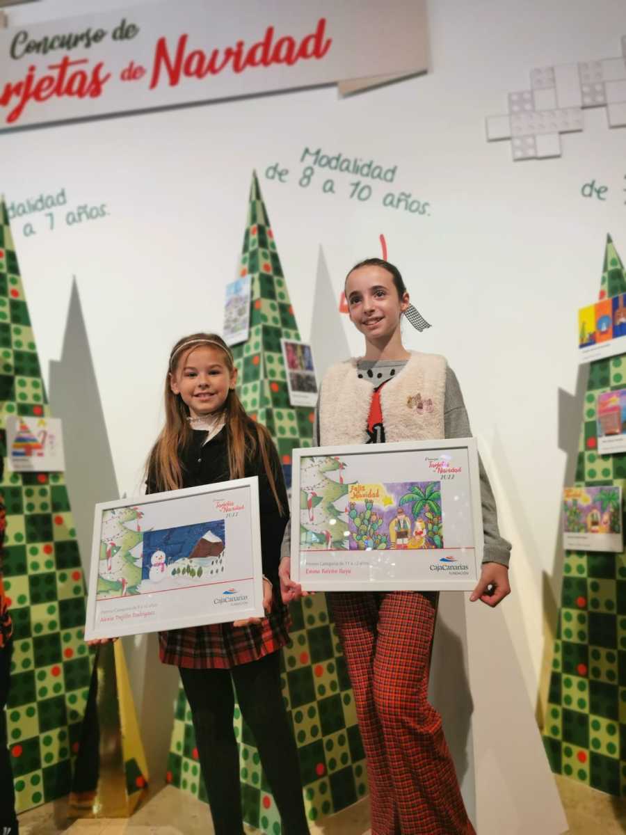 Nuestras alumnas Enma Falcón Raya y Alexia Trujillo Rodríguez han resultado premiadas en el Concurso de Tarjetas de Navidad organizado por CajaCanarias tras elaborar dos maravillosas postales llenas de color y de espíritu navideño. Fue el pasado sábado 3 de diciembre cuando recibieron su merecido reconocimiento junto a otros ganadores en un acto familiar