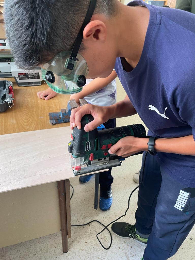 El alumnado de 1º de la ESO está realizando en Tecnología una carpeta, obteniendo unos resultados realmente originales. Algunos han decidido emplear madera y han usado por primera vez una sierra de calar (o caladora).