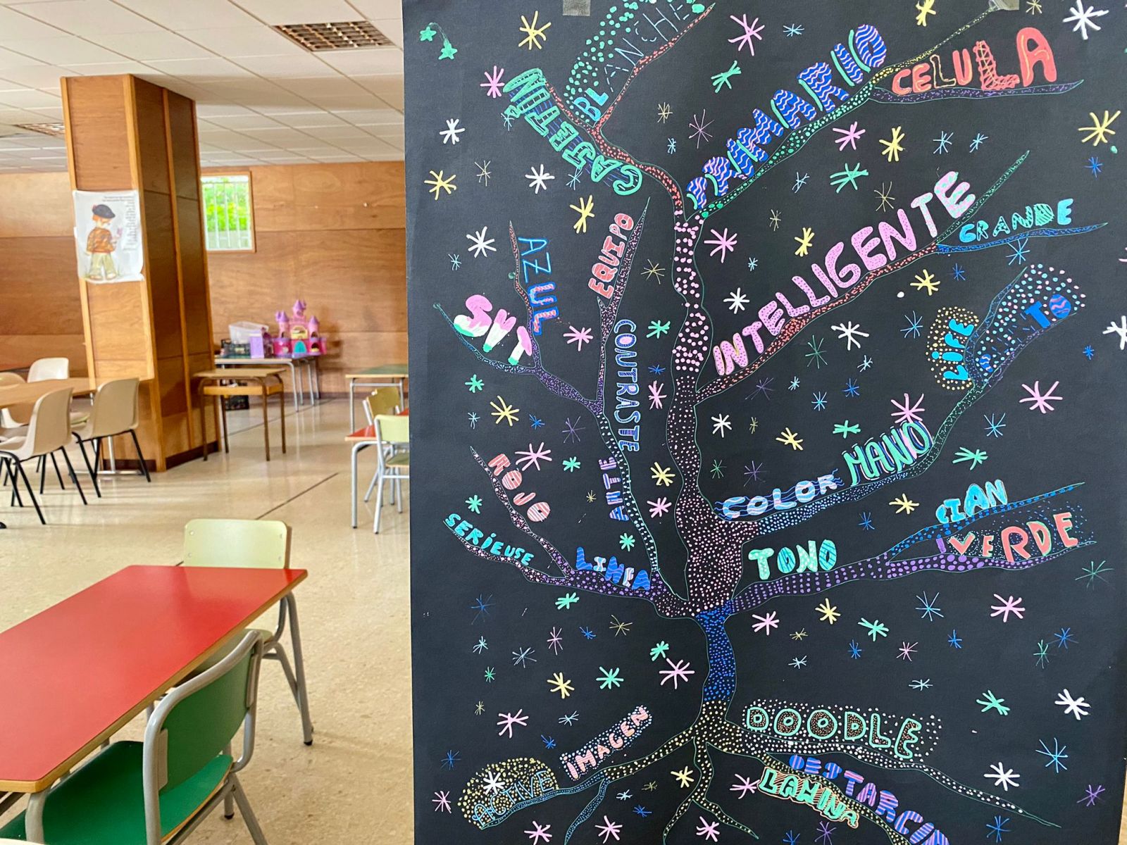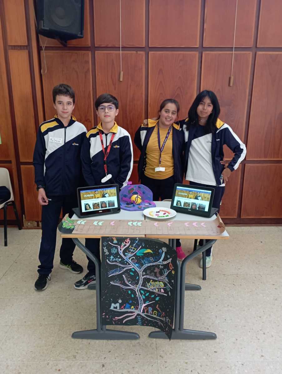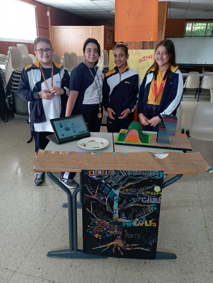 Los alumnos de 1º ESO han estado durante dos semanas trabajando la Narrativa Life, en la que, a través del personaje de Lynn Margulis, han trabajado diferentes aspectos que les han invitado a la cooperación y a descubrir el origen de la vida. Desde el área de Plástica, Francés y Biología han realizado un colorido árbol de la vida compuesto de palabras relacionadas con las tres materias que expondrán en la Feria Científica el jueves 10 de noviembre en el salón de actos de nuestro centro.