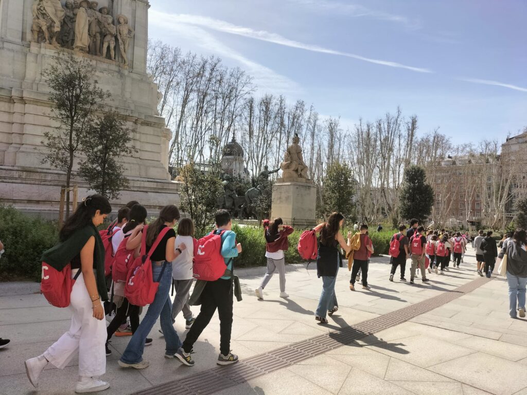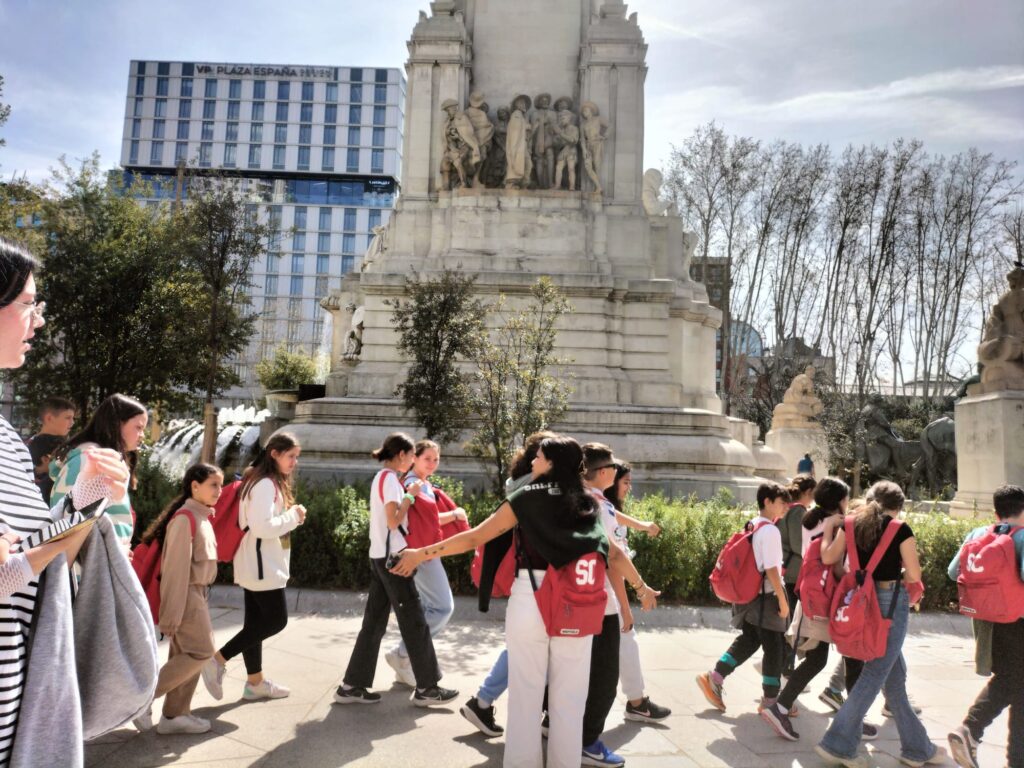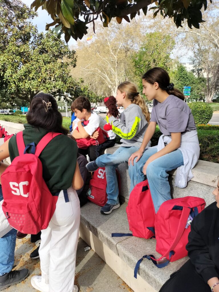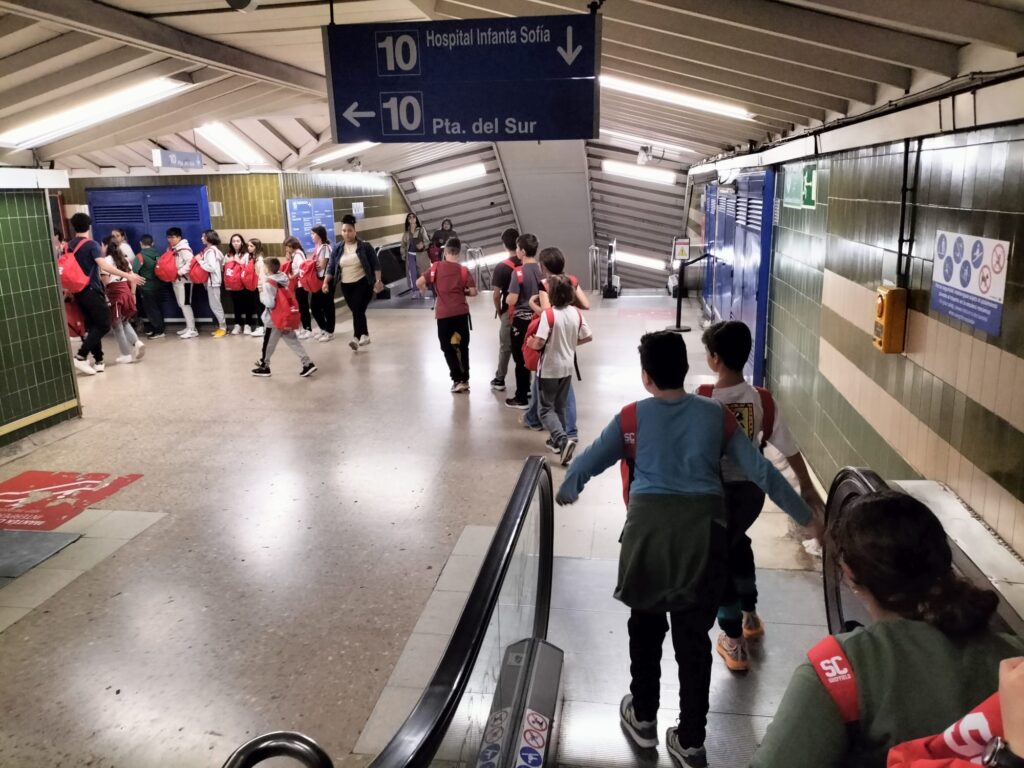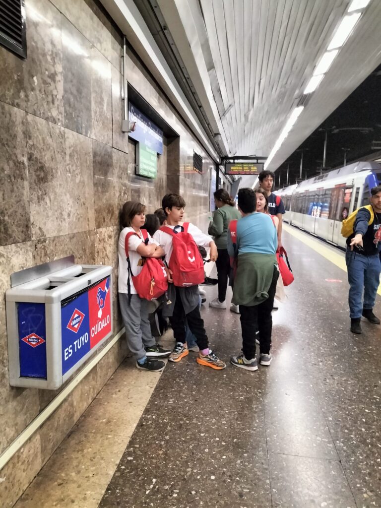Una alegre travesía en el Metro (para muchos de nuestros alumnos era su primer viaje en este) nos llevó a la Plaza de España, donde pudimos jugar antes de visitar la exposición de la Fundación Telefónica.