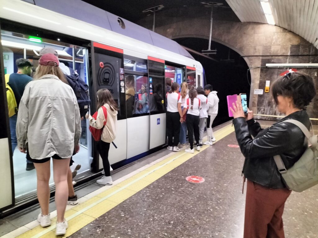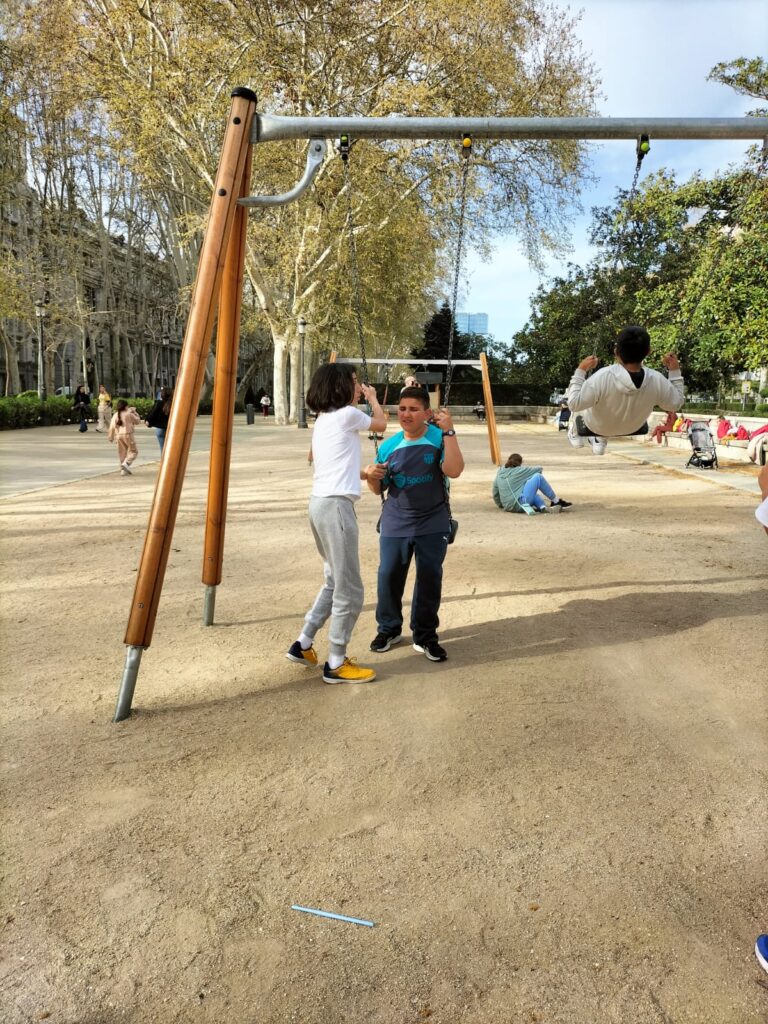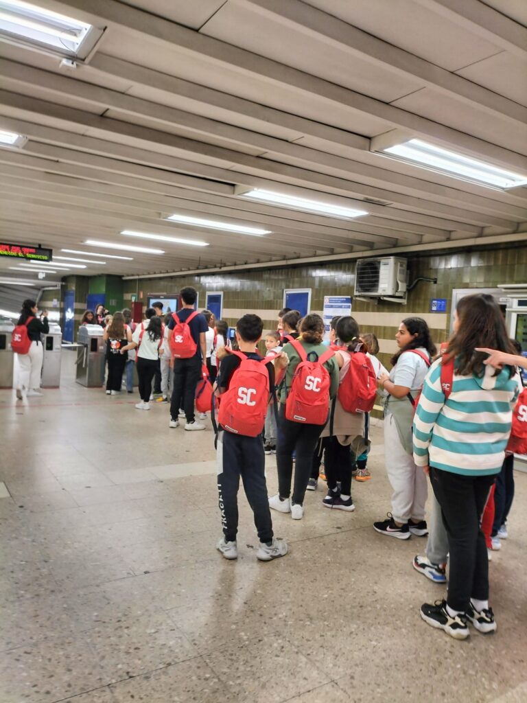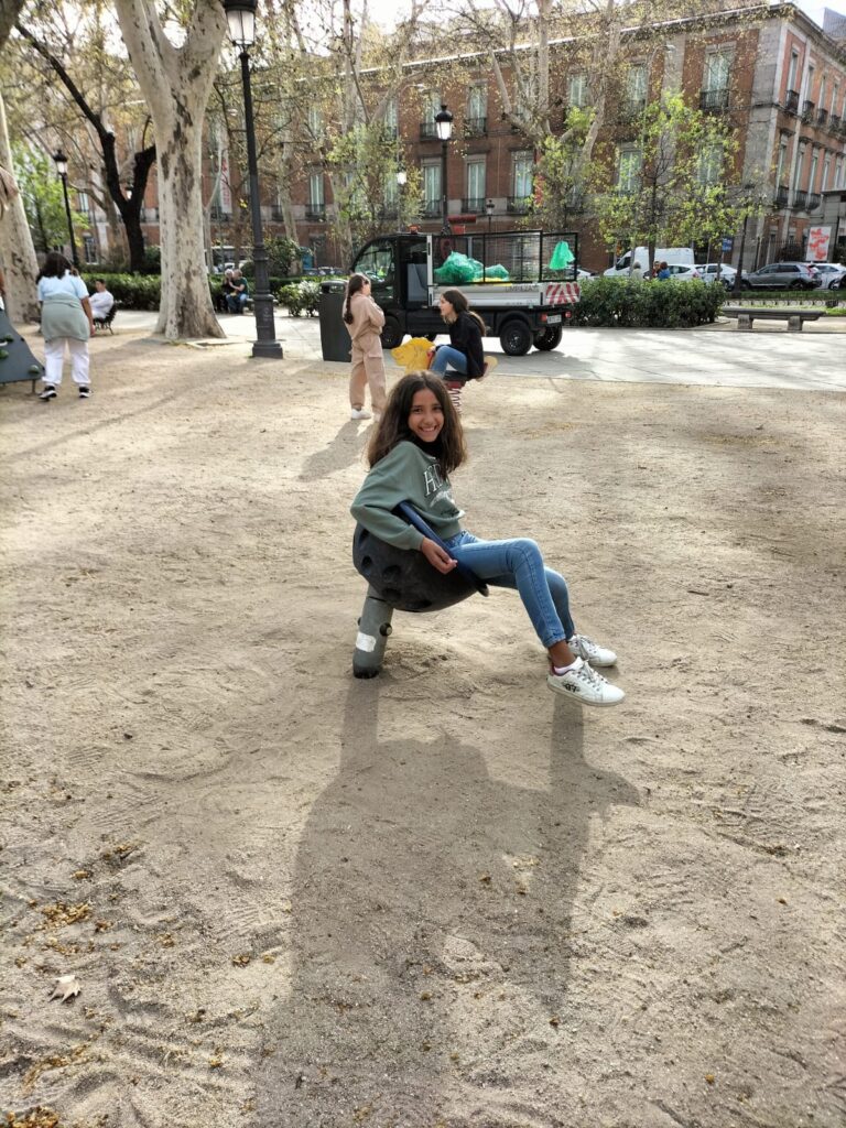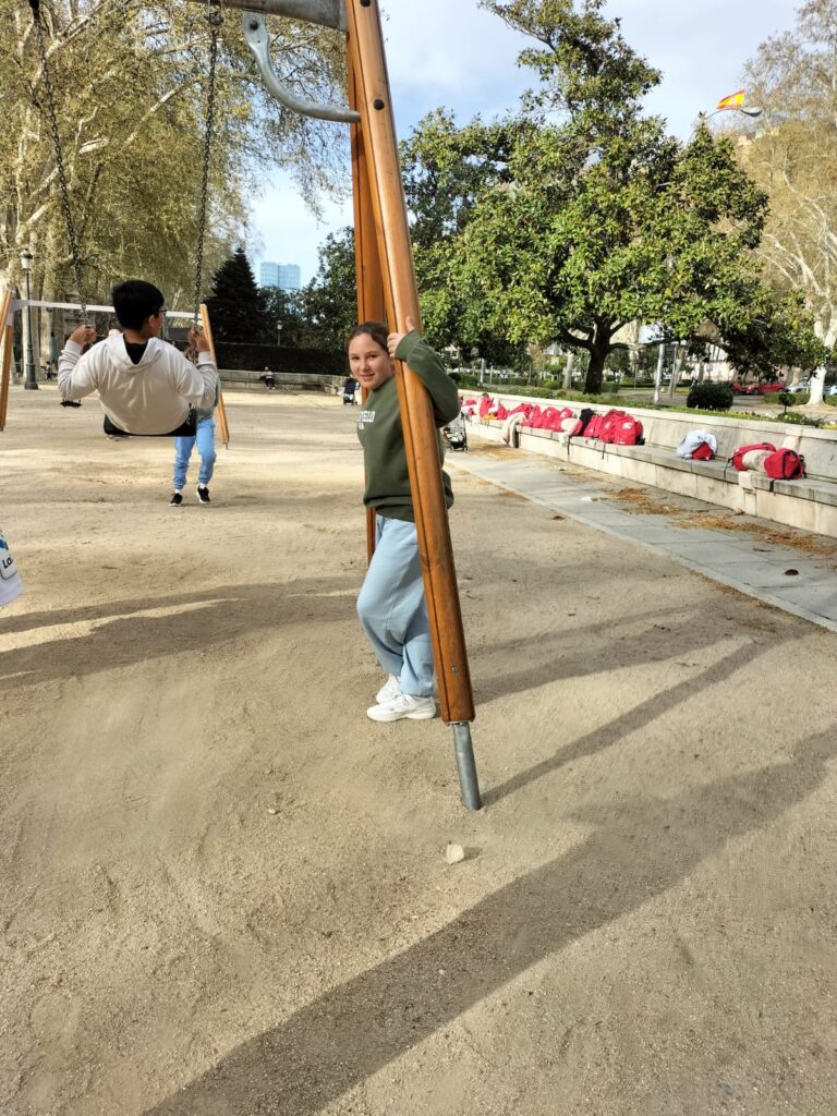 Una alegre travesía en el Metro (para muchos de nuestros alumnos era su primer viaje en este) nos llevó a la Plaza de España, donde pudimos jugar antes de visitar la exposición de la Fundación Telefónica.