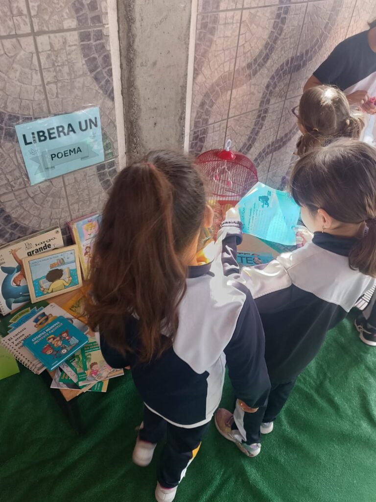 A lo largo de esta Semana del Libro en nuestros recreos el alumnado ha podido visitar nuestra Biblio-Patio, un pequeño rincón lleno de libros infantiles para que aquellos curiosos y curiosas que quisieran desayunar en compañía de una buena lectura. Además, los amantes de la poesía pudieron disfrutar de la dinámica «Libera Un Poema», en la cual pudieron elegir entre una serie de pergaminos escondidos dentro de una jaula que escondían numerosos poemas infantiles.