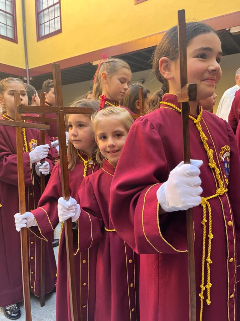 En la tarde de ayer, Miércoles 27 de marzo, tuvo lugar la misa y posterior procesión de Nuestro Padre Jesús Nazareno y Nuestra Señora de la Soledad acompañada de su cofradía que, como es tradición está formada por niños y niñas de nuestro colegio. Antes de la misa, la cofradía ofreció su tradicional homenaje al Hermano Ramón, con una oración y la ofrenda de un ramo de flores.