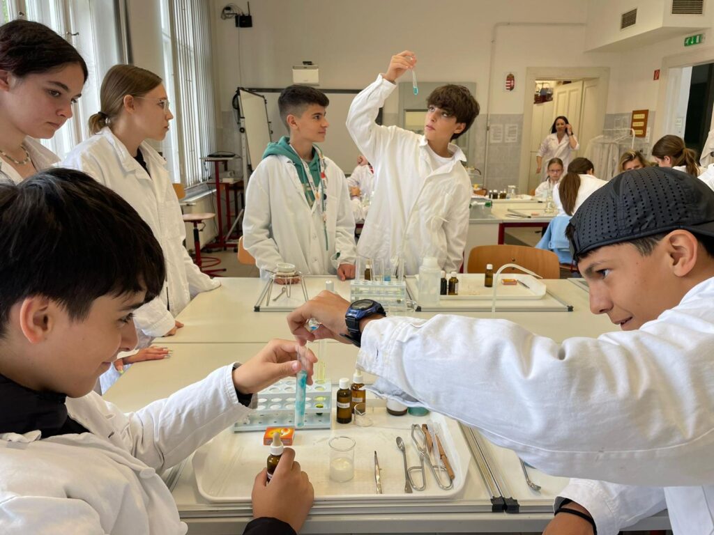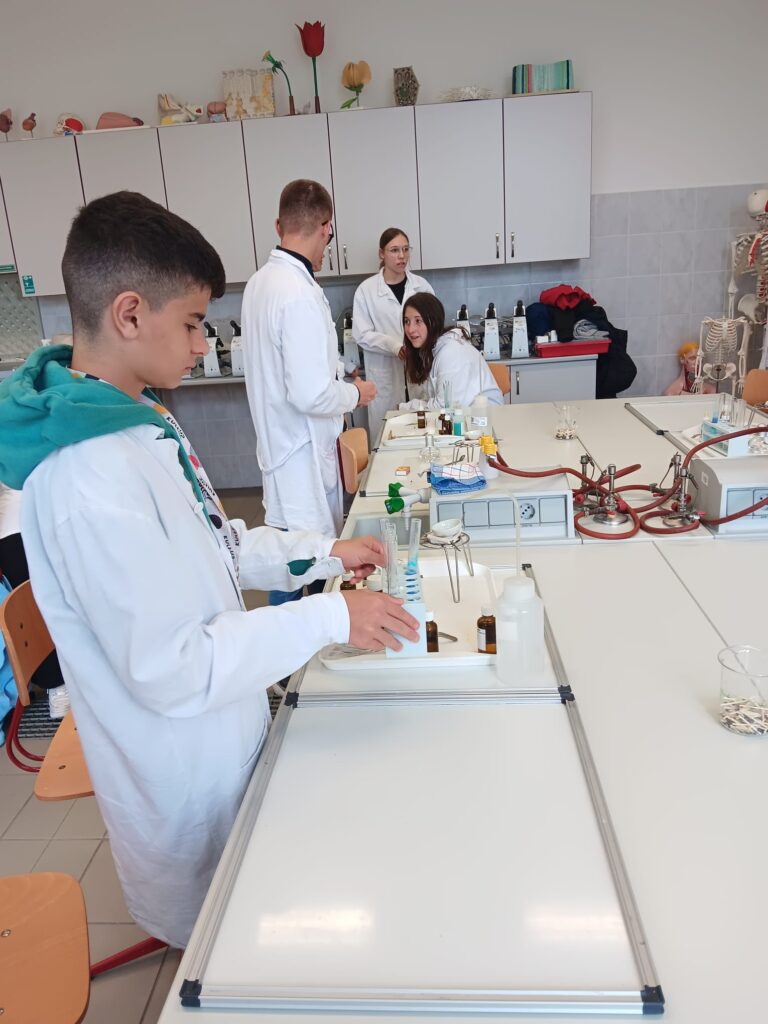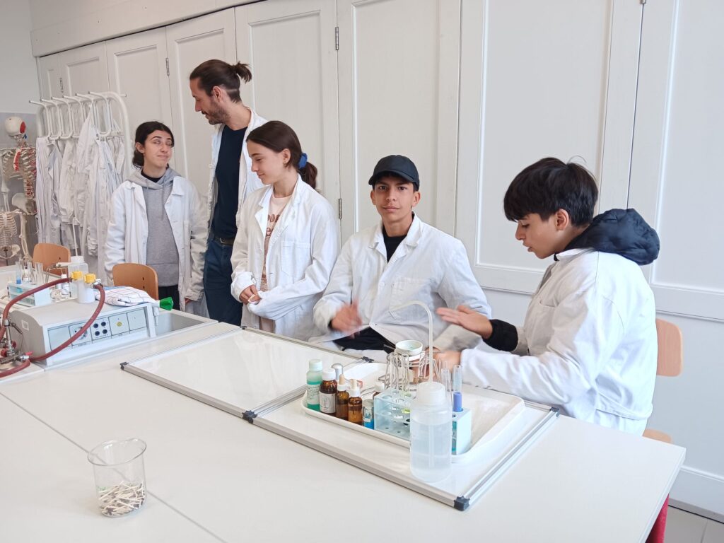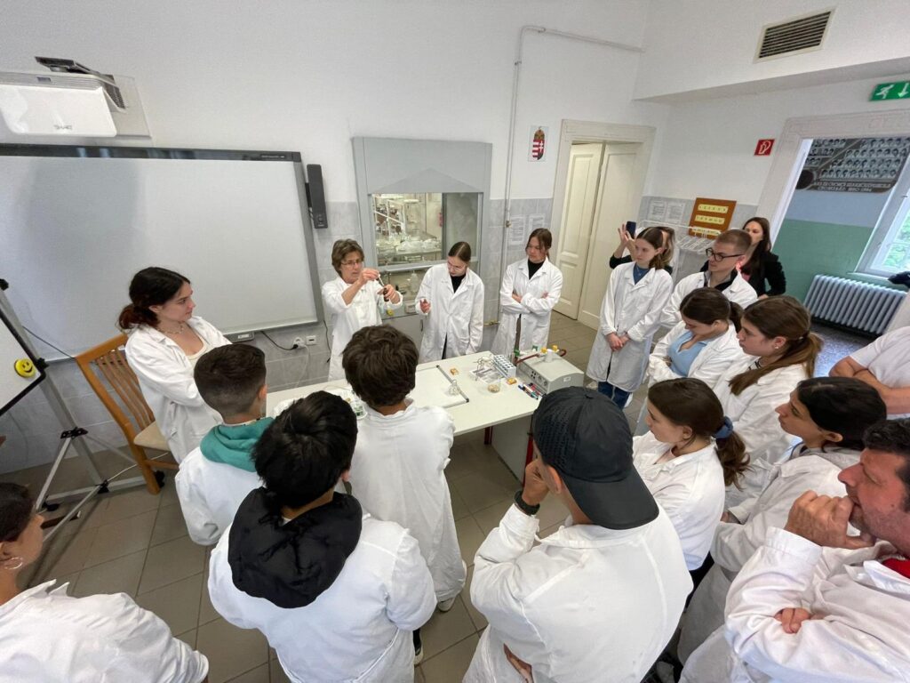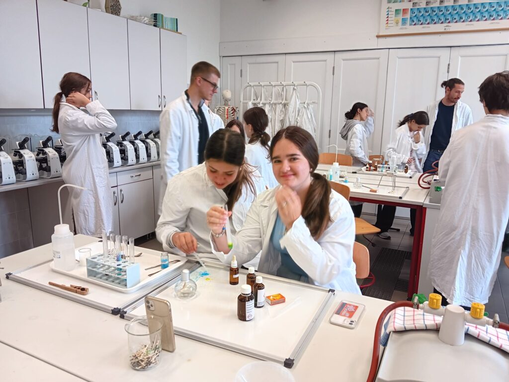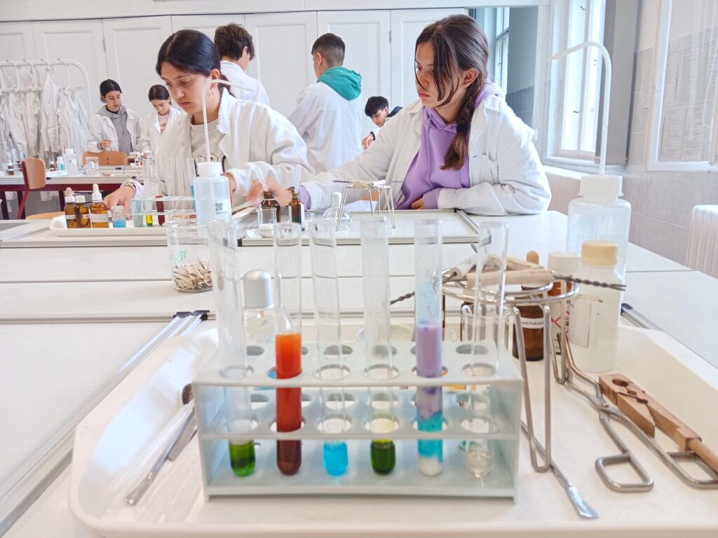 Tras un descanso reparador, nos reunimos a primera hora de la mañana para dirigirnos al colegio con el que estamos realizando esta movilidad. Lo primero que nos llamó la atención es su preciosa fachada, así como el hecho de que ya es Centenario (¡como nuestro cole!). Después de visitar sus instalaciones, realizamos un circuito de experimentos en el laboratorio y asistimos a una actividad de teatro. Desde el primer momento nos sentimos muy acogidos por toda su Comunidad Educativa.