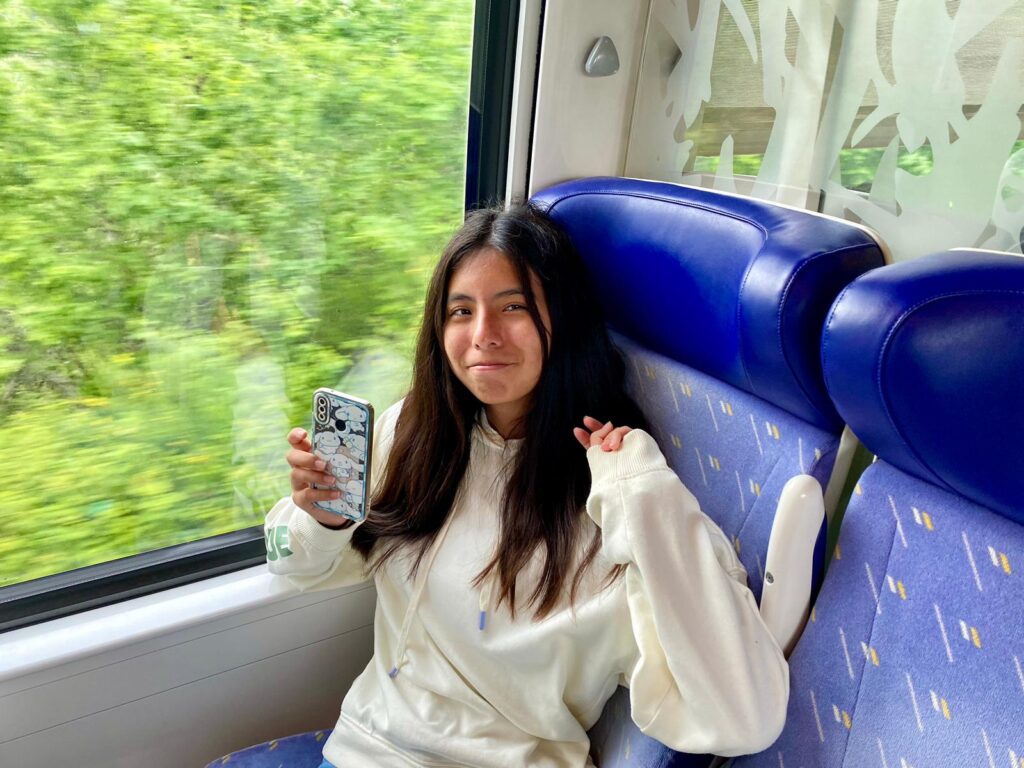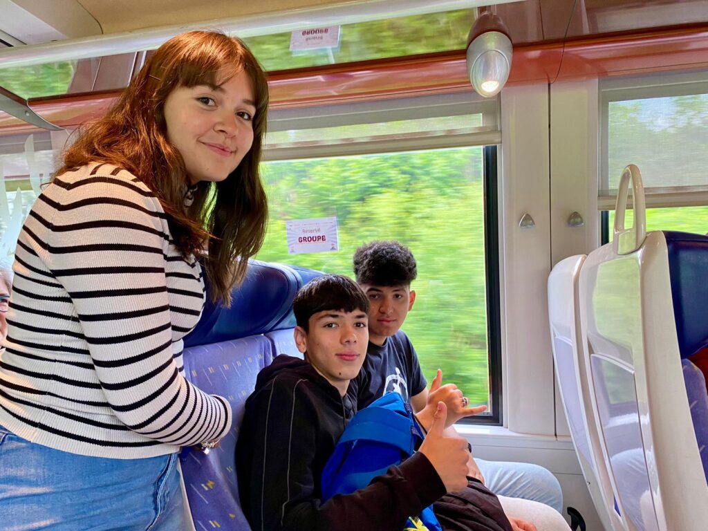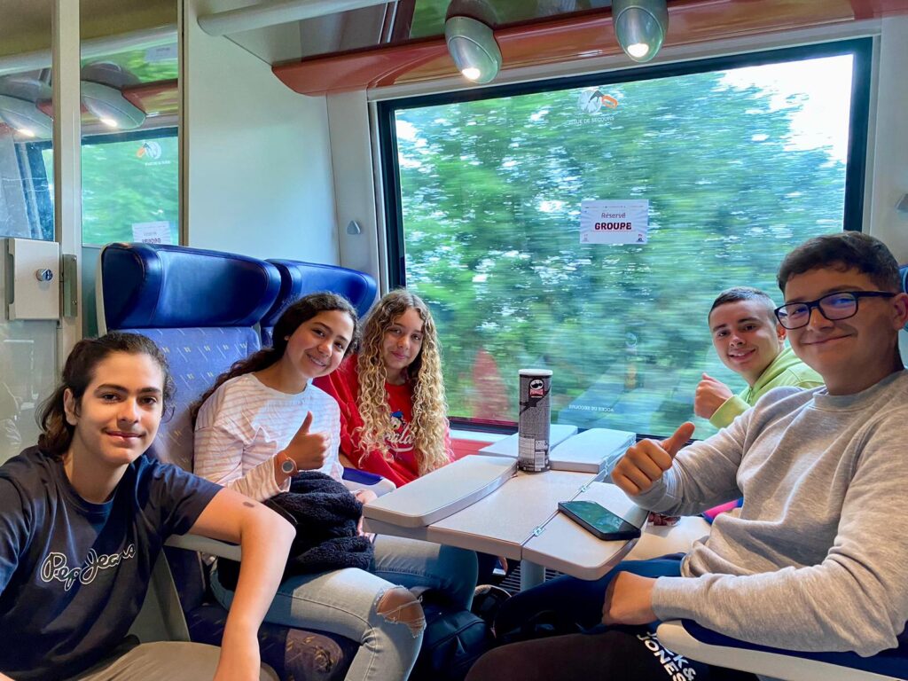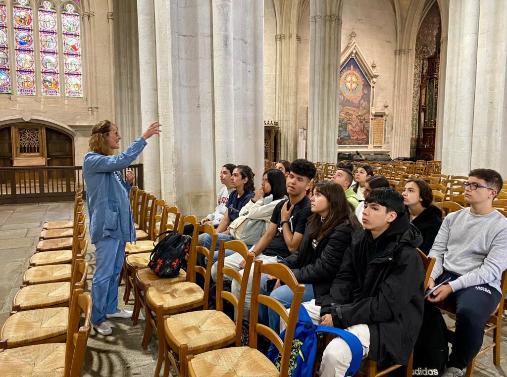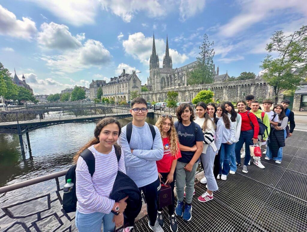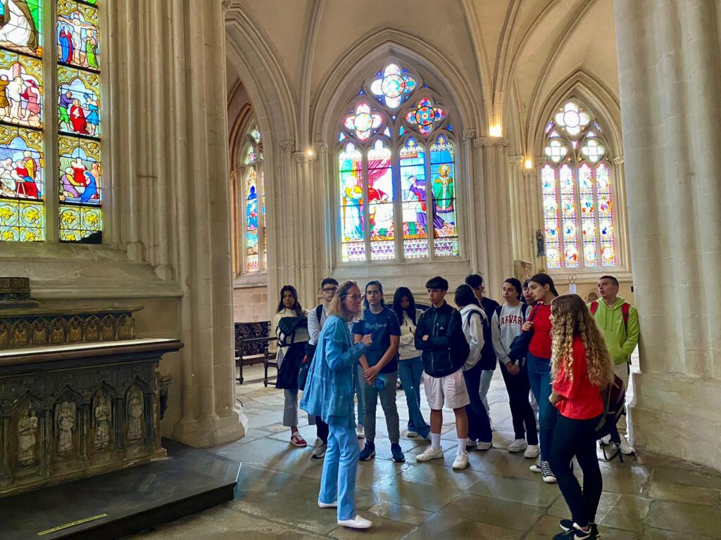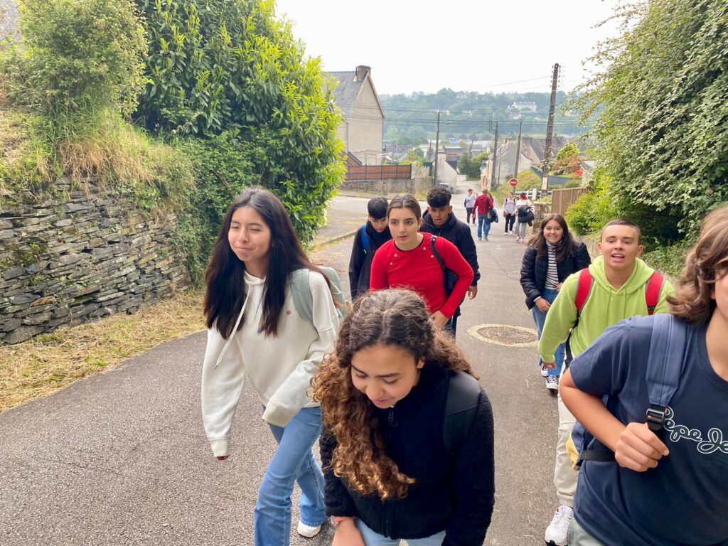 Coucou! Seguimos disfrutando de tierras bretonas. Hoy nos tocaba descubrir la ciudad de Quimper, ciudad de Arte e Historia, gracias a la calidad de su patrimonio arquitectónico. Empezamos la mañana a las 8:00 en el colegio, momento perfecto para ver las fotos de las caras que se nos habían quedado en las atracciones tuvimos un momento de encuentro con los profes y luego dirección a la estación de tren. Para muchos era nuestra primera vez en ir en tren así que imagínense la emoción. La experiencia fue muy guay, llegamos a Quimper y allí nos esperaba una guía muy agradable que nos descubrió los encantos del lugar. Después de la visita tocaba recargar fuerzas y fuimos a una crêperie, nos comimos una crêpe salada y otra dulce, estaban riquísimas Para finalizar nuestro día ,dimos un último paseo por la ciudad y de regreso en tren a encontrarnos con nuestros correspondants.