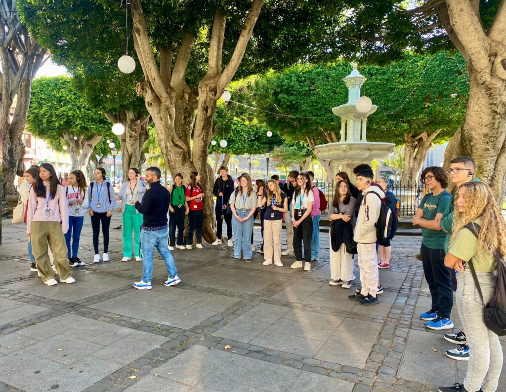 El pasado sábado llegaron los alumnos franceses con los que durante este curso y dentro del programa Erasmus + haremos un intercambio. El domingo estuvo lleno de planes para todos los gustos. Lo que no faltó en ninguno fue el buen tiempo y la comida sabrosa. Hoy en su primer día en el cole, unos momentos para ponernos al día y luego nos dirigimos a La Laguna para realizar una visita guiada y descubrir nuestra ciudad Patrimonio de la Humanidad. Después de la caminata, recarga de pilas con un chocolate con churros y vuelta al cole para recibir una charla sobre El Teide, previa a nuestra visita de este viernes. Esta tarde nos toca presentarnos para conocernos un poquito más y luego jugar, no hay mejor manera para romper el hielo, aunque creemos que ya se ha roto.