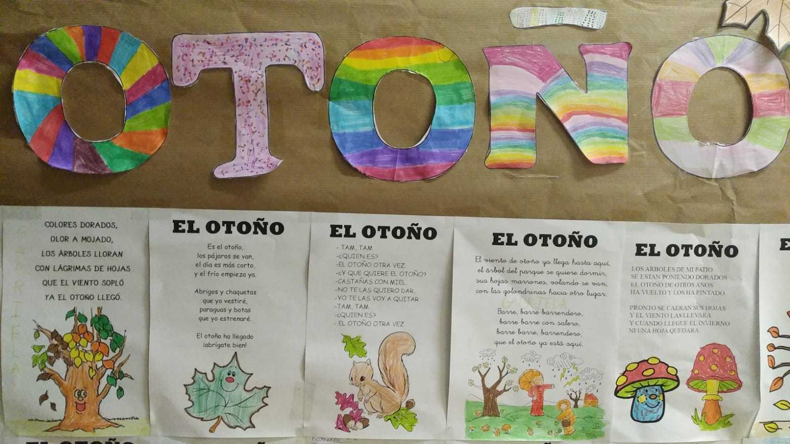 Nuestra Biblioteca Escolar celebra el mes de Noviembre haciendo un tributo a la Estación del Otoño. Muchos de los alumnos que nos visitan diariamente han leído poesías del otoño acompañadas de dibujos otoñales que ellos mismos han coloreado, dando vida a un mural tan bonito que han confeccionado y que cuelga estos días en el pasillo de nuestra biblioteca.