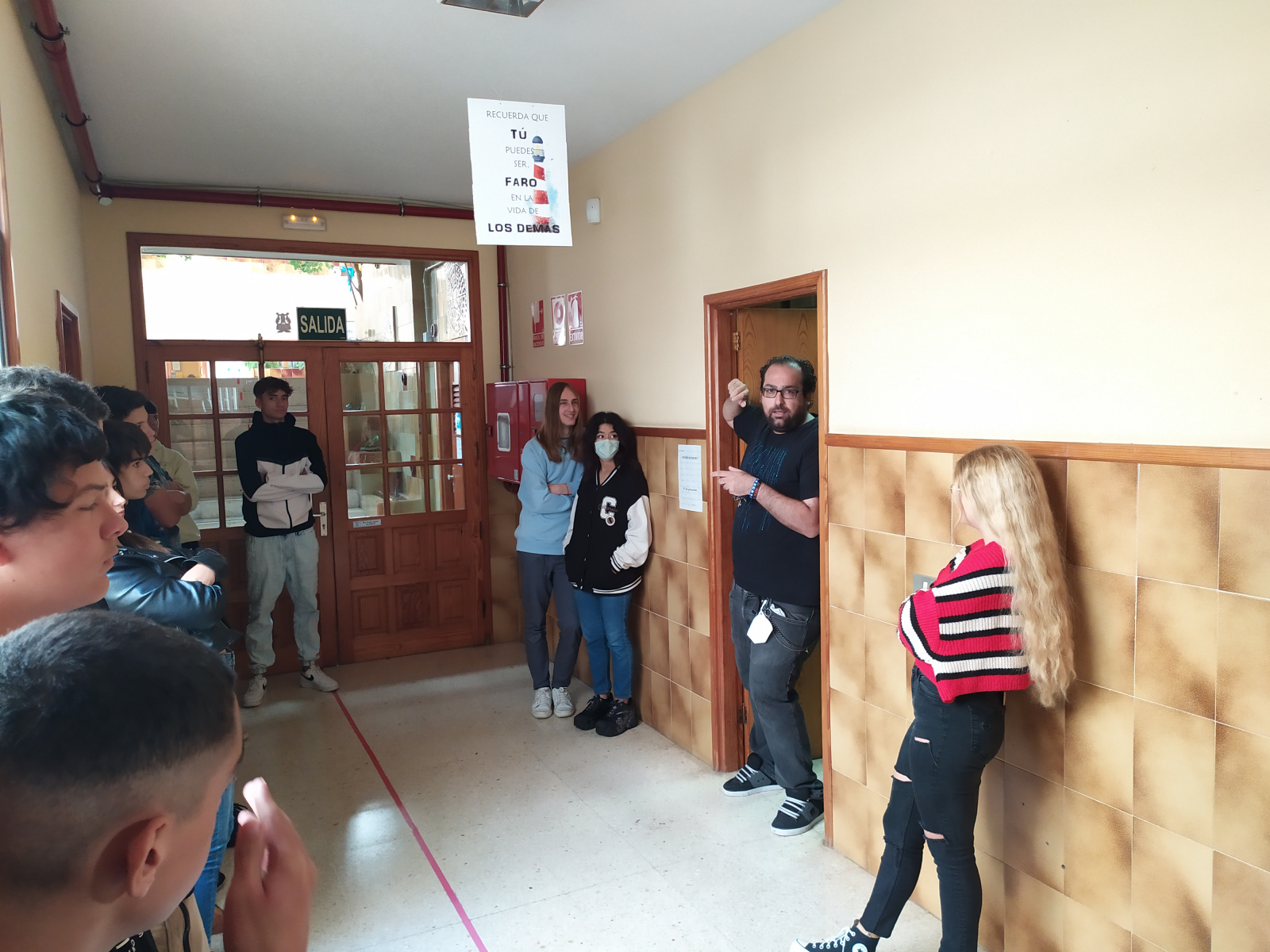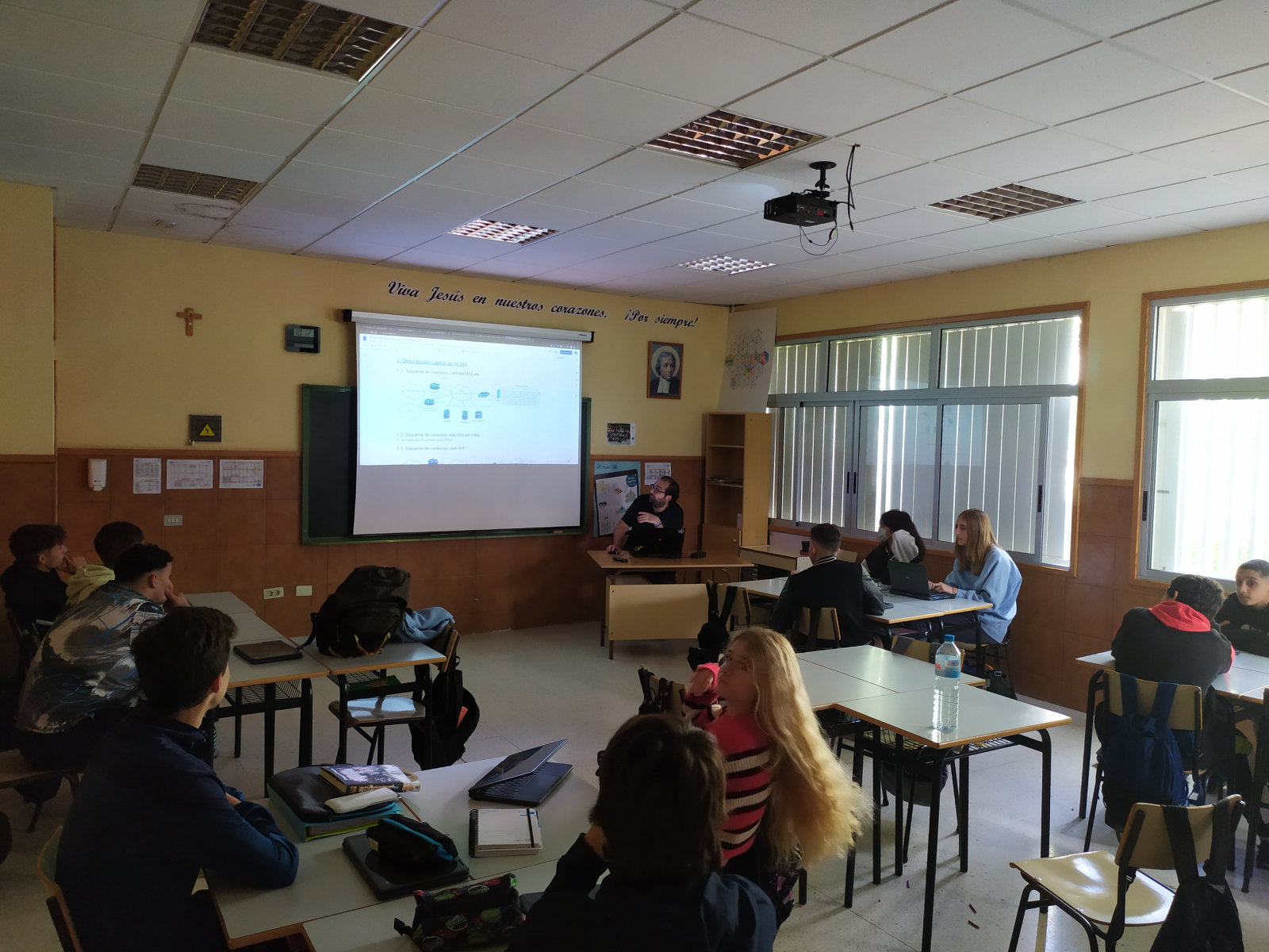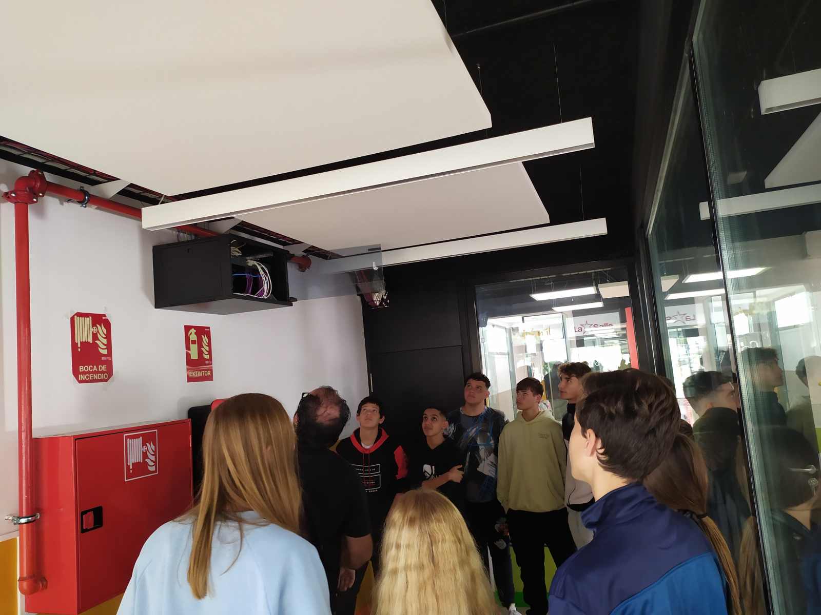 Los alumnos de 4º ESO que cursan la asignatura TIC (Tecnologías de la información y la Comunicación) conocieron de primera mano la red informática del colegio. Parte de esta materia es conocer la conectividad en red de dispositivos informáticos y que mejor manera que conocer cómo es la estructura informática del centro. Nacho, Técnico informático del centro, les mostró los lugares más importantes como el centro de procesamiento de datos con el servidor del colegio y las diferentes conexiones que hay por todas las Etapas.