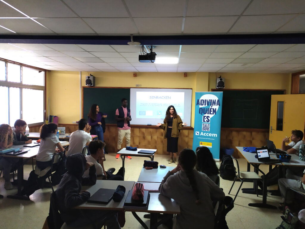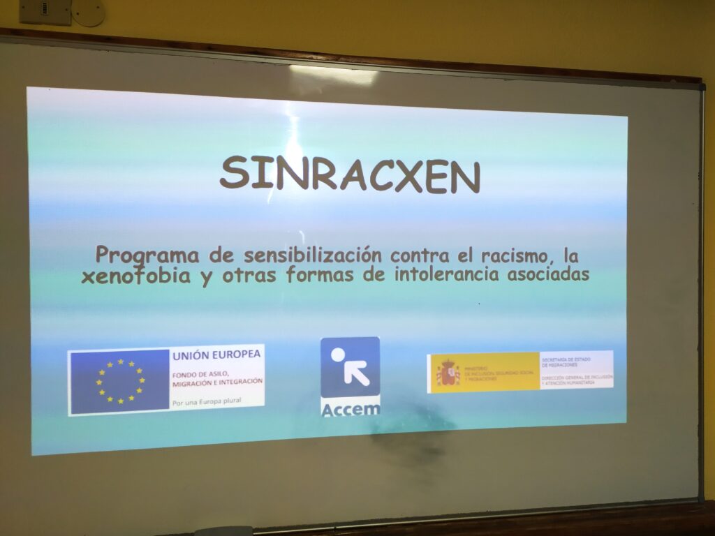 Los alumnos de 1º ESO en la asignatura de Educación en Valores Cívicos y Éticos tuvieron la semana pasada la visita de la Asociación ACCEM, organización sin ánimo de lucro, que trabaja para mejorar las condiciones de vida de las personas en situación de vulnerabilidad. A través de SINRACXEN programa de sensibilización contra el racismo, la xenofobia y otras formas de intolerancia asociadas, trabajamos los referentes y las miradas distintas a la hora de analizar la diferencia.