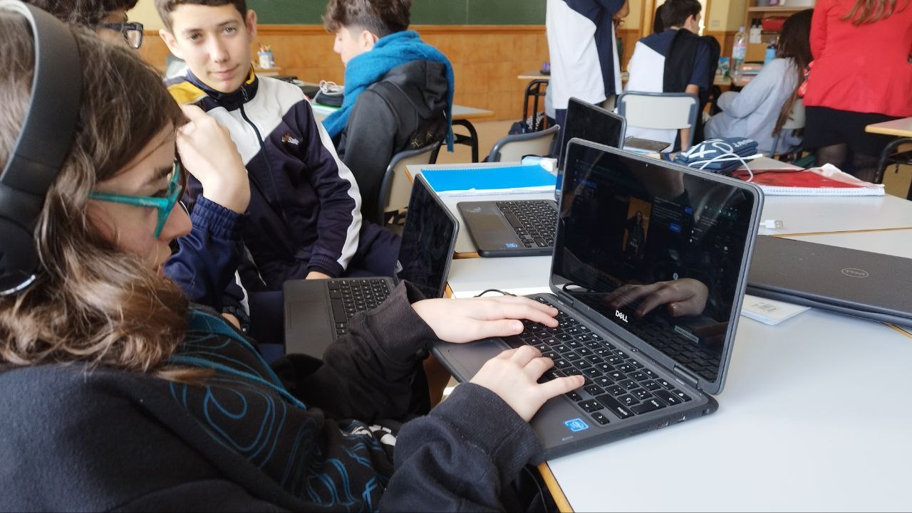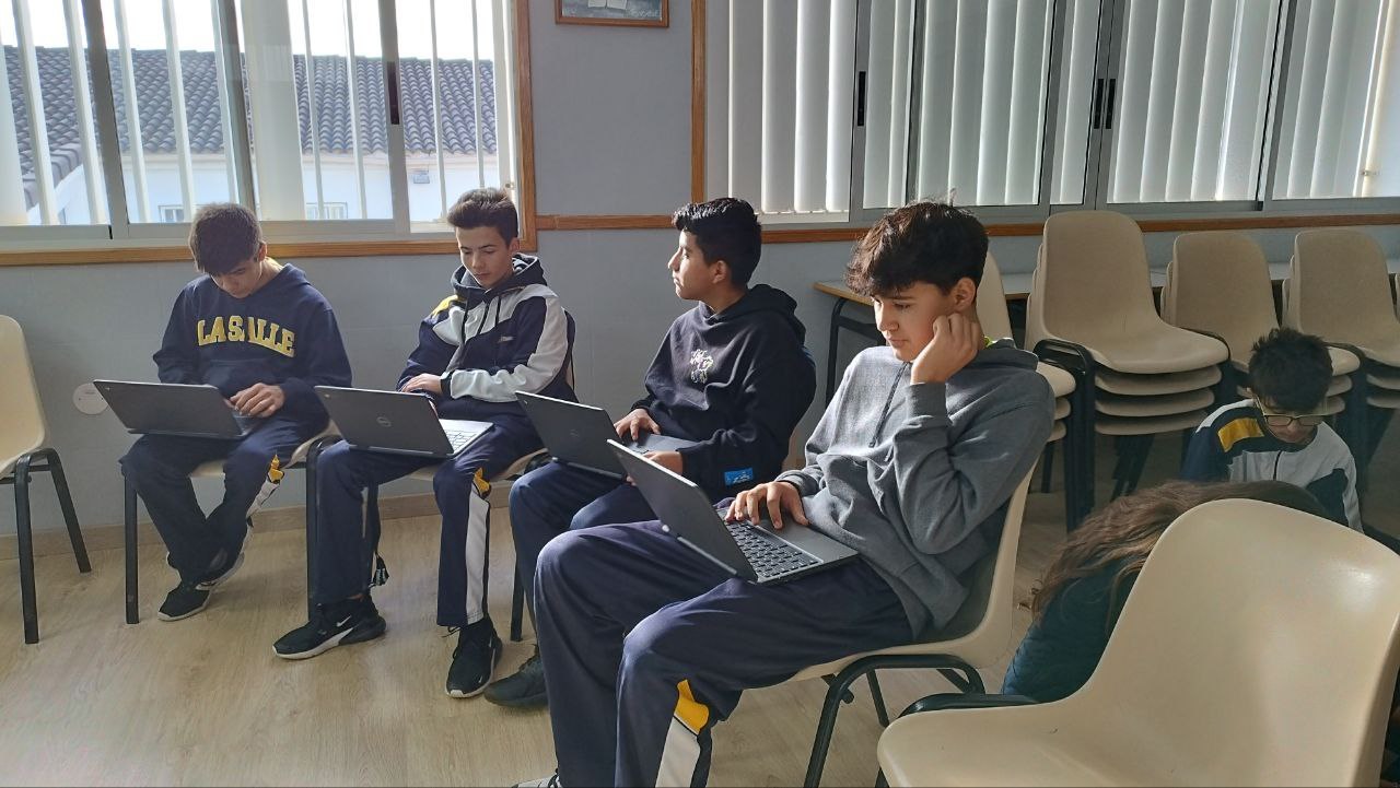 Gracias a los Chromebooks  los alumnos y alumnas han podido desarrollar todo el trabajo y hemos utilizado la nueva Sala Erasmus para poder unir a las dos clases.