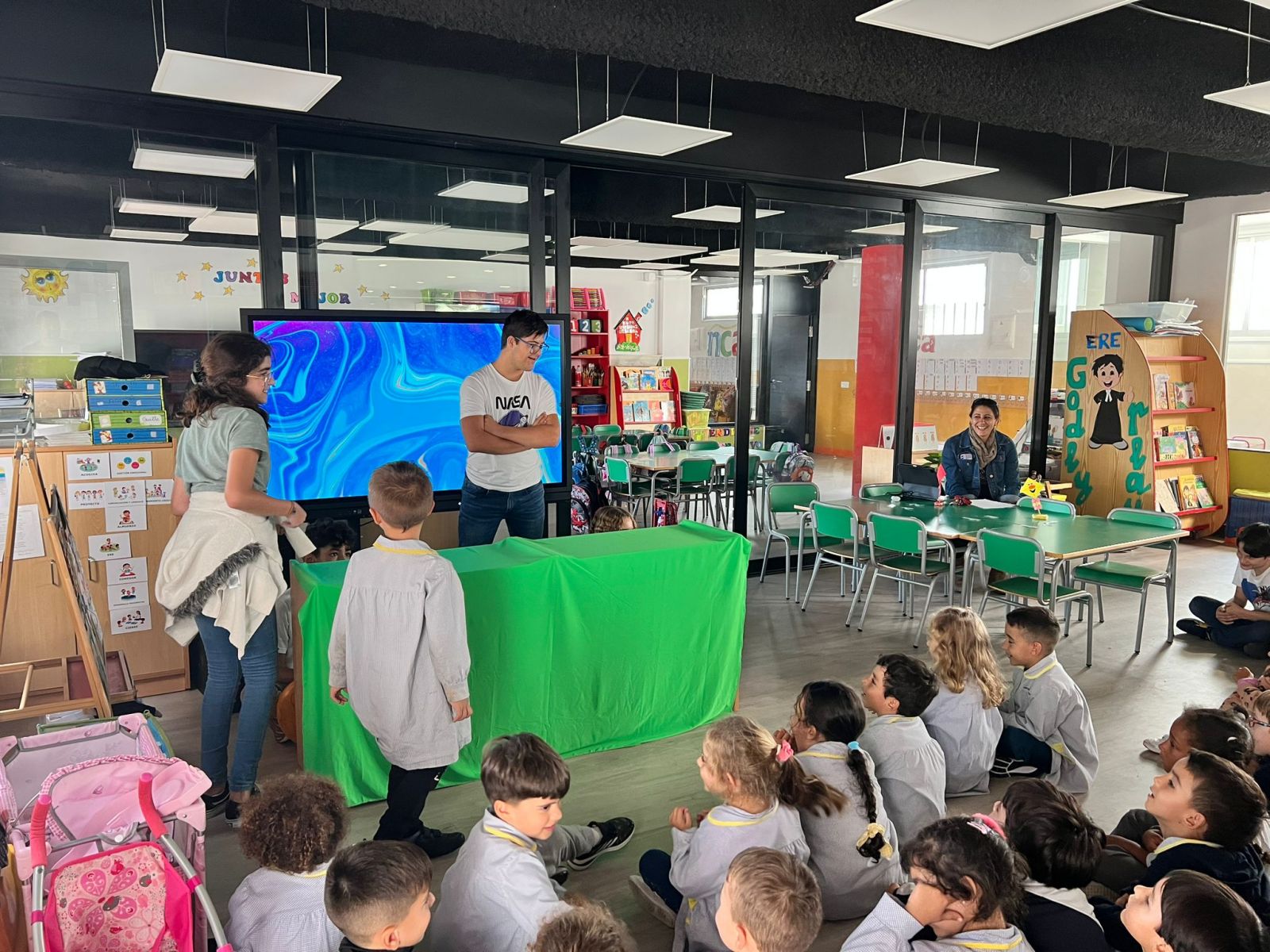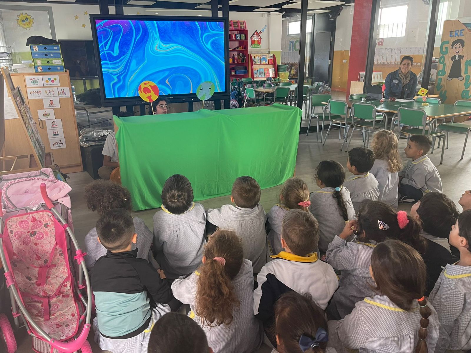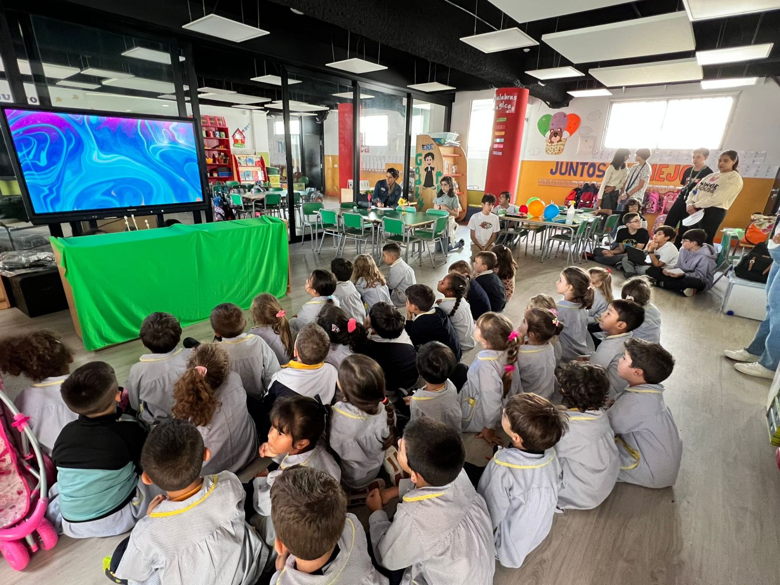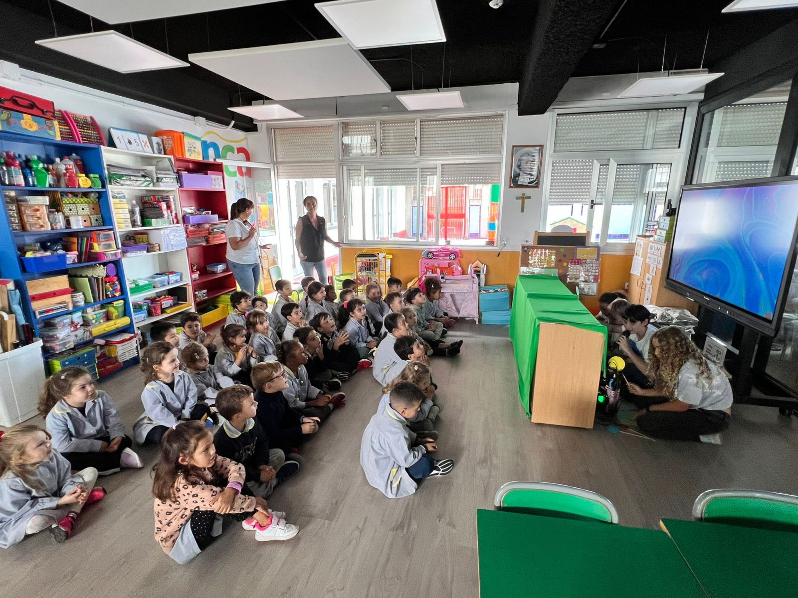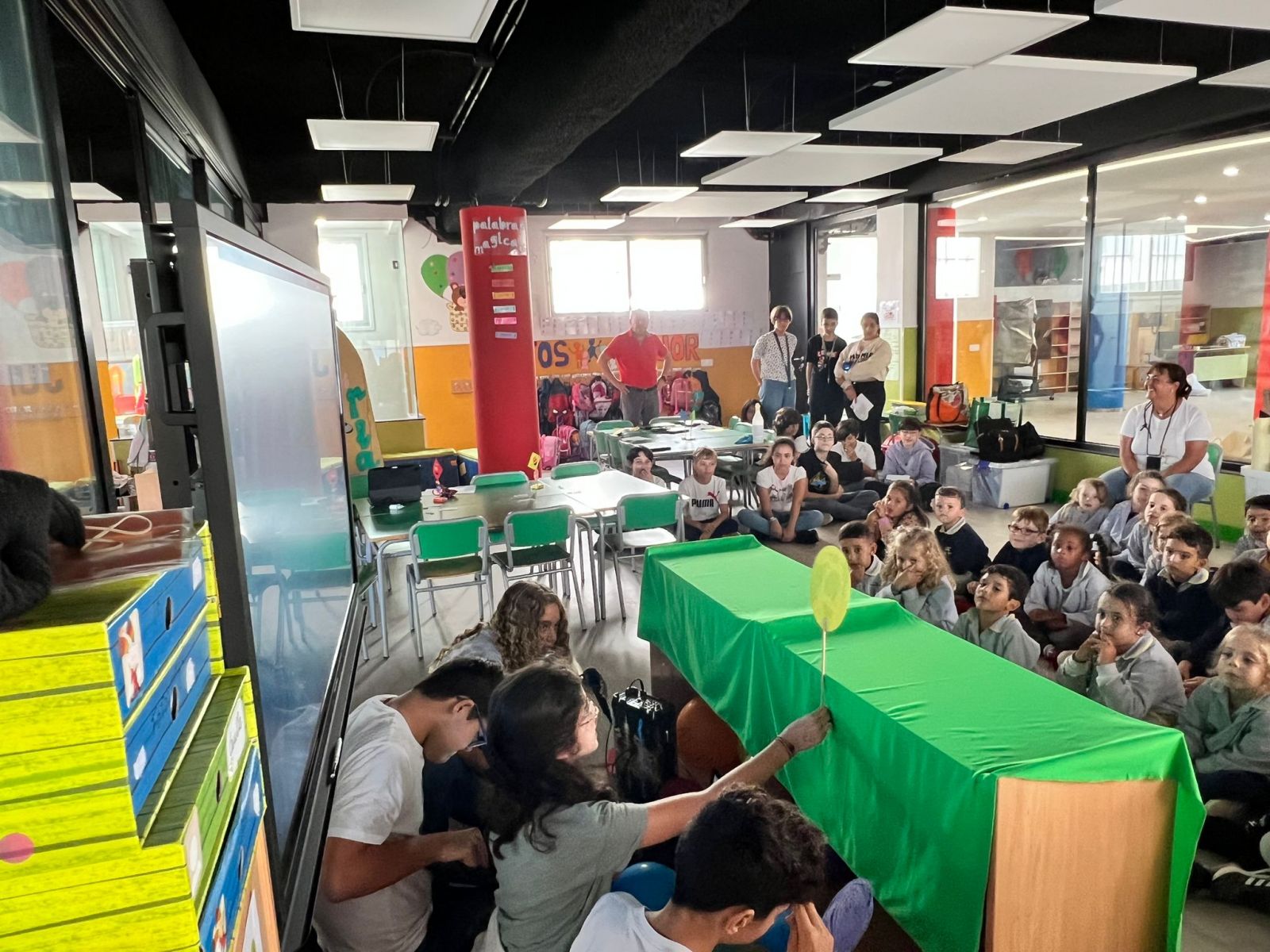 Los alumnos de 1º ESO han terminado la Narrativa NCA «Estrellas» y con todo lo aprendido, visitaron a los alumnos de Infantil para explicarles con títeres: La Teoría del «Big Bang».
