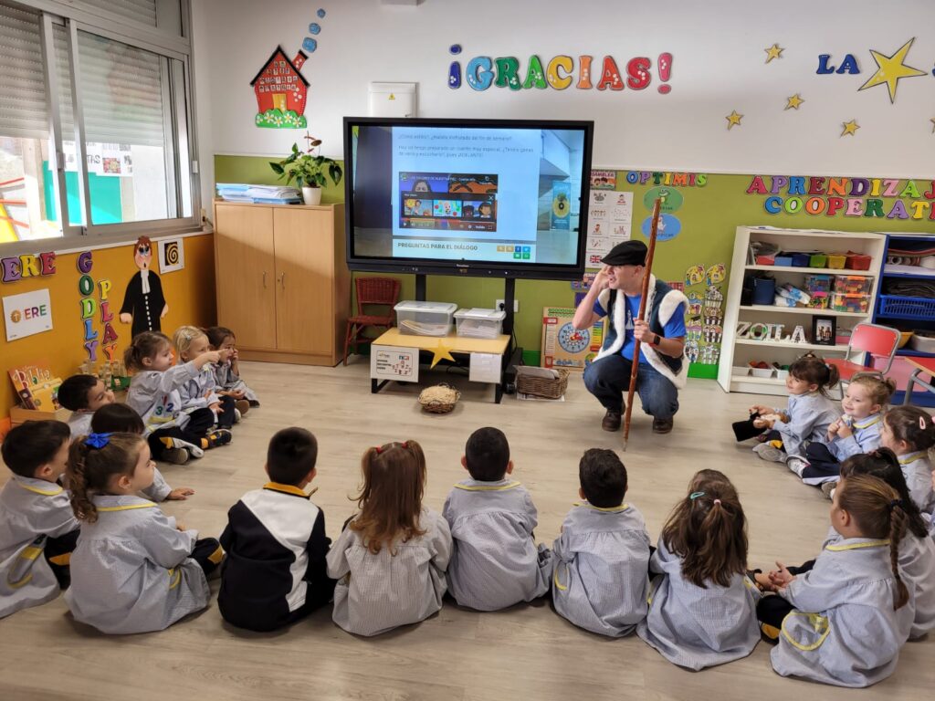 En el día de hoy el pastor Aitor, desorientado y preocupado, vino buscando a un bebé recién nacido siguiendo una estrella y como el símbolo de nuestro colegio es una estrella grande y bonita ha llegado hasta aquí, hasta