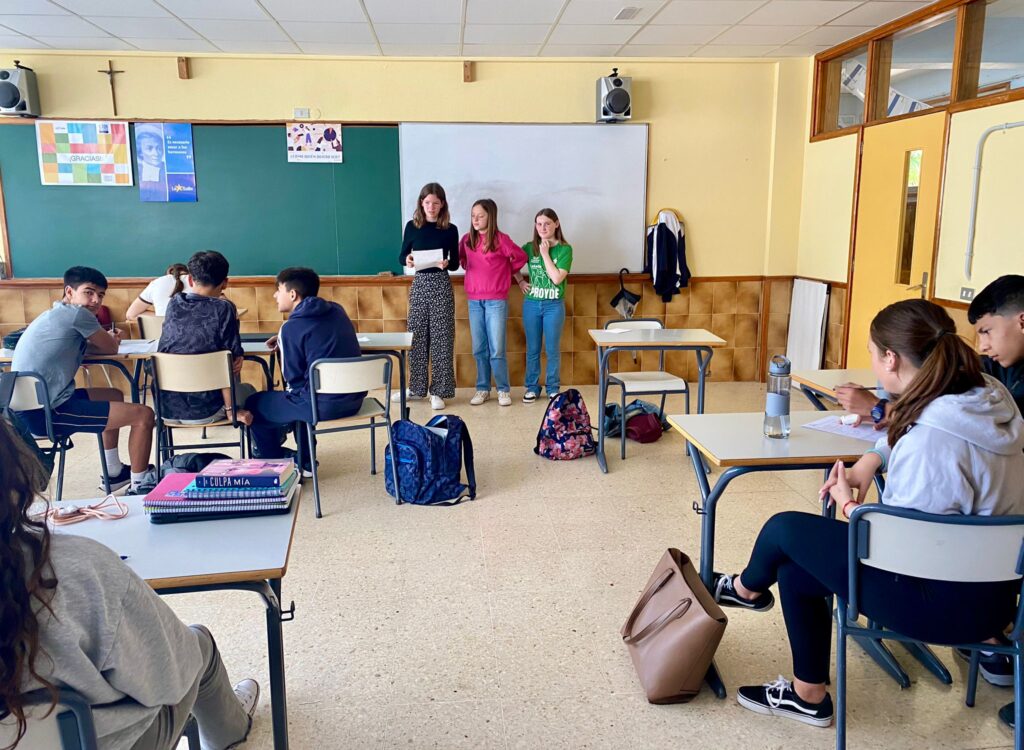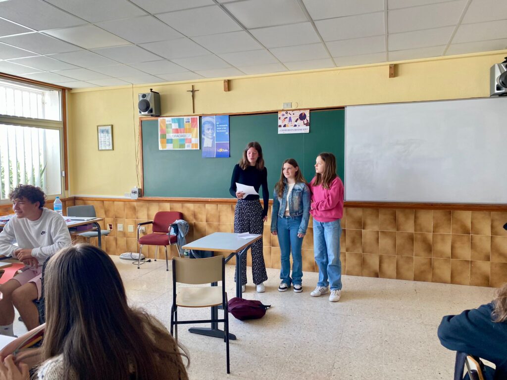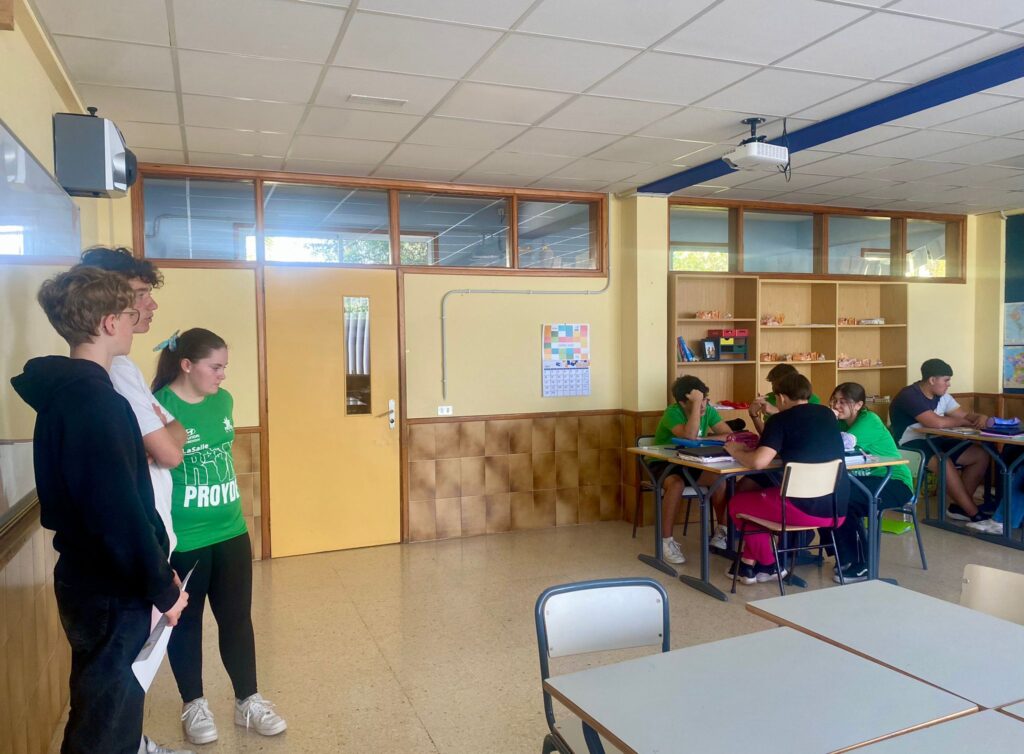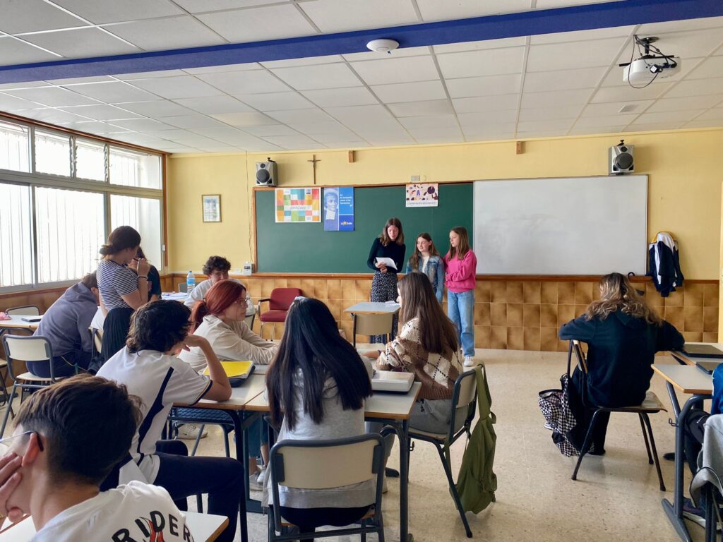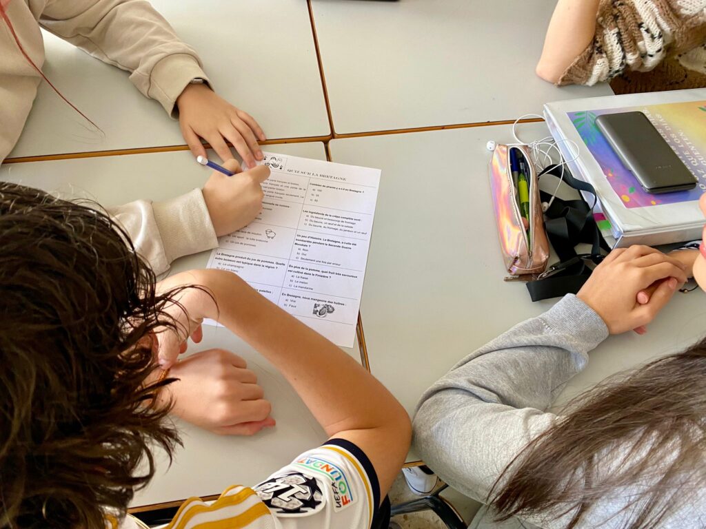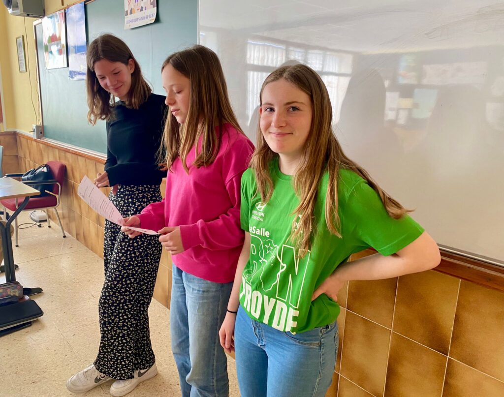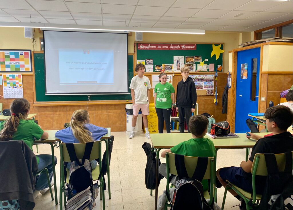 Los alumnos franceses que esta semana están visitando nuestra isla durante el día de hoy han estado animando algunas sesiones de Secundaria y de Primaria. Para ello han preparado un quiz sobre la Bretaña francesa, una actividad para adivinar las cosas que se pueden encontrar allí y las que no y han realizado también una sesión de trabalenguas. Ha sido una experiencia muy divertida para todos que ha servido para acercarles de otra manera la lengua francesa.
