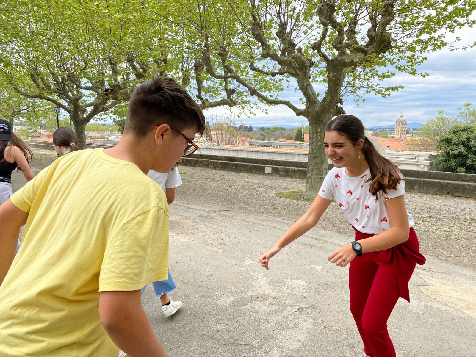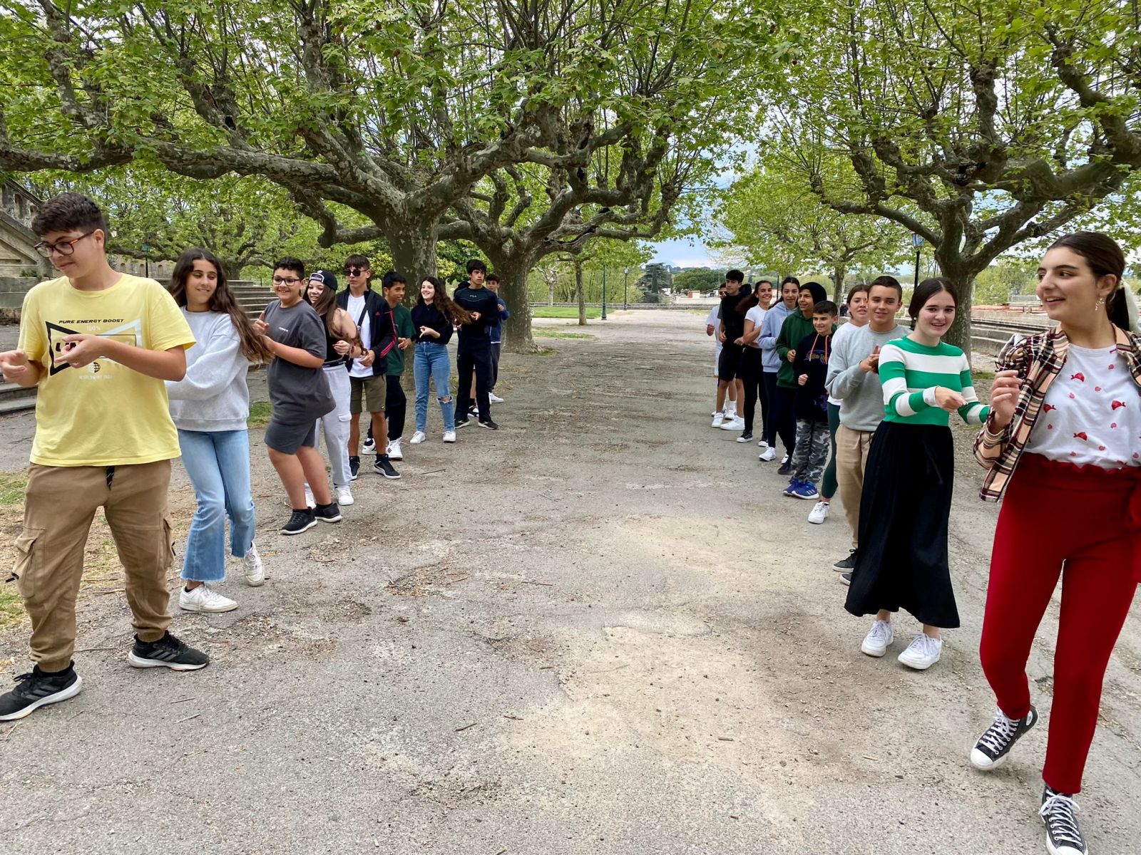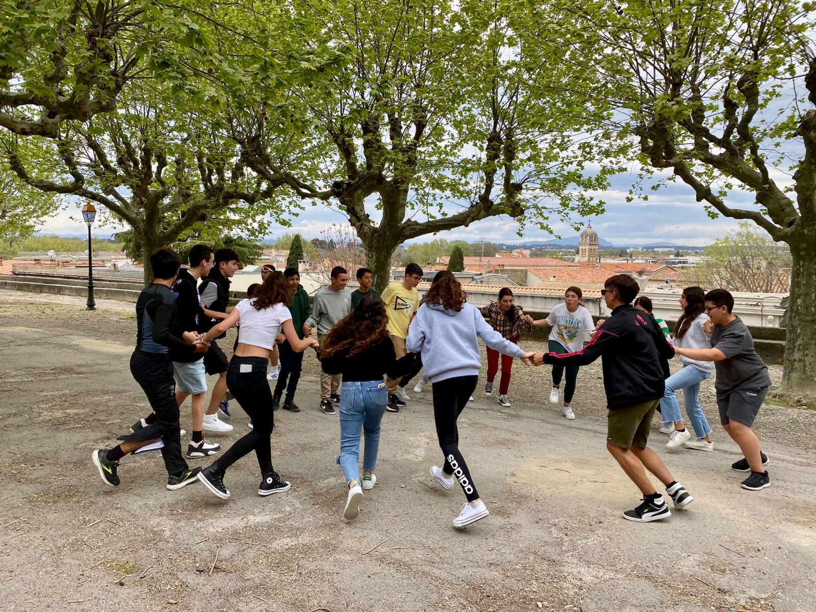 Bonjour!!! Hoy al igual que ayer hemos tenido clase por partida doble pero la verdad es que se nos ha pasado volando , estamos disfrutando mucho con los profes 😁 hoy hemos jugado al tabú , ha sido muy divertido y hemos aprovechado para repasar algunas cosas. Después de la primera clase hemos ido a comer a la boulangerie 😋 no sabemos que nos pasa aquí pero tenemos hambre a todas horas 😅 Después de comer hemos tenido un ratito libre que aprovechamos para comprar algún regalito ( no podemos dar ningún adelanto pero estamos seguros que les van a gustar ). Tras las compras a clase de nuevo y al finalizar nos esperaba nuestra guía Jérémie para realizar un taller de danse occitanes. Al principio estábamos algo tímidos pero poco a poco nos hemos ido soltando, empezamos con los pasos más sencillos y como hemos ido avanzando rápido terminamos con un baile algo más complicado, fue un rato muy muy divertido y entretenido , algunos nos quedamos con ganas de repetir , queda pendiente de tarea practicarlo al regreso a Tenerife 😉 Después del baile un ratito para finalizar compras, pasear y disfrutar de la ciudad. Los días están pasando muy rápido, estamos pensando quedarnos una semana más , ¿ qué les parece ? Mañana toca visitar La Salle Montpellier, estamos con muchas ganas de ver un cole como el nuestro aquí. Tenemos algunas actividades programadas , ya les contaremos , ahora toca faire dodo 😴 Hasta mañana familia😘
