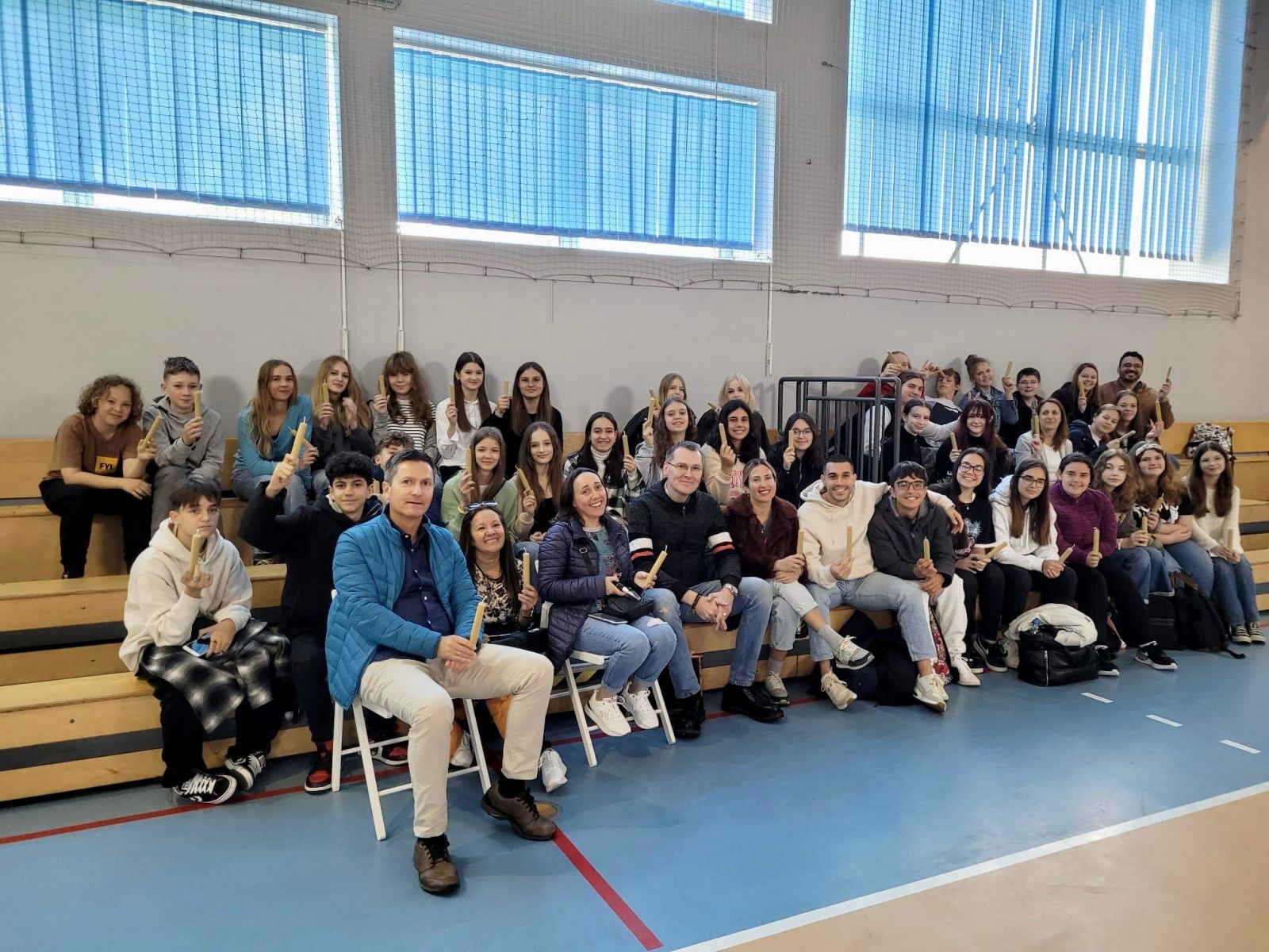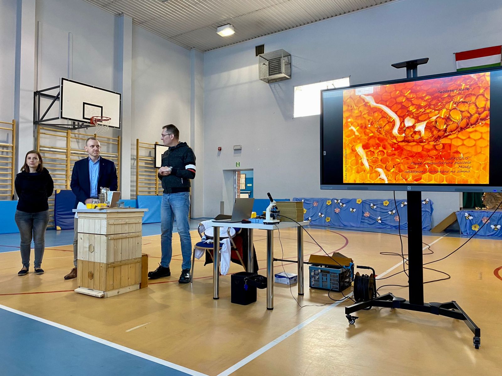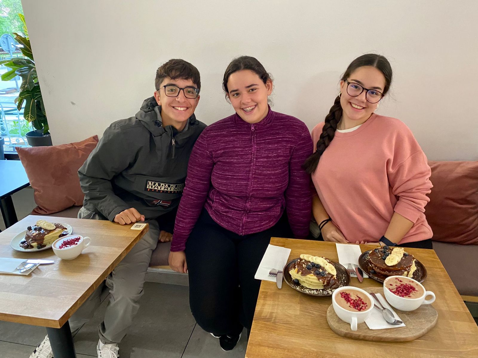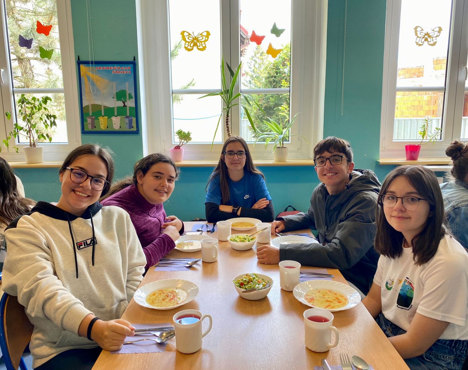Durante esta primera mañana en el cole hemos realizado varias actividades: Empezamos con la bienvenida de todos los alumnos del centro , en este ratito compartido aprovechamos para realizar las presentaciones de los coles de Polonia, Hungría , Portugal y nosotros, por supuesto. Varios alumnos del centro se dividieron en grupos para presentarnos los diferentes espacios del lugar. Fue una visita muy entretenida e Interesante. Tras esta tuvimos una charla sobre abejas en la que descubrimos cosas muy interesantes sobre estos insectos que dan nombre a nuestro proyecto. Después de la presentación nos reunimos todos en el comedor y…¡a comer! Estaba todo delicioso Tras la comida, hemos pasado la tarde con nuestras familias para hacer diferentes planes: a algunos nos toca bolera, otros iremos al centro … vamos, que no nos aburriremos